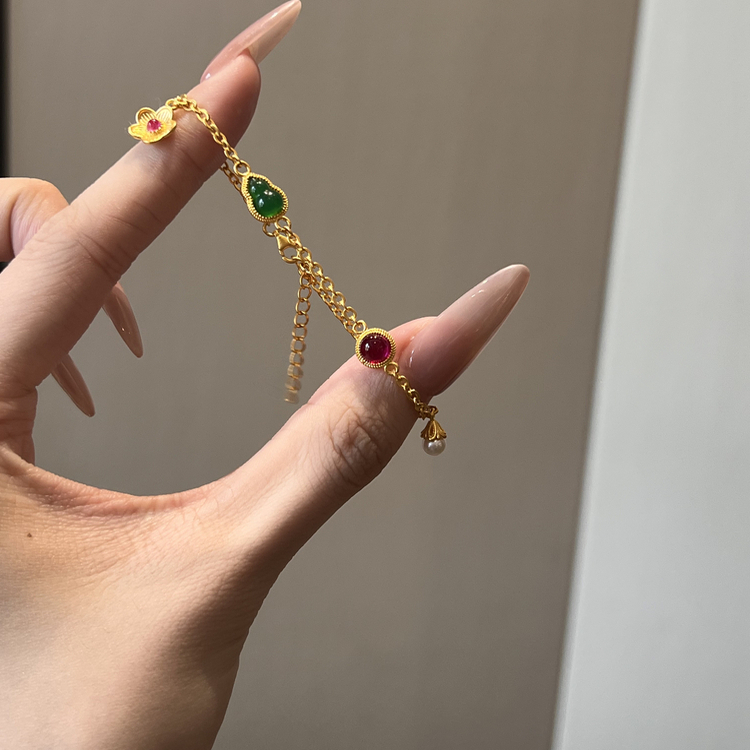 古法5D手串手链足金999水贝黄金招财小福禄手链2025新款送礼