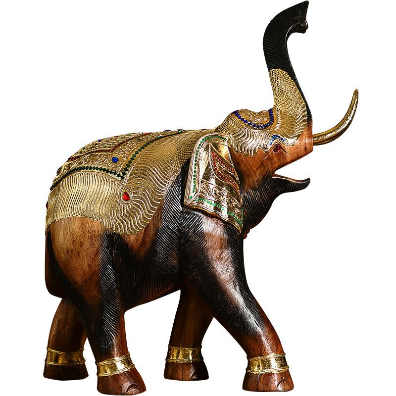 异丽泰国实木木雕大象摆件一对客厅玄关酒柜泰式装饰品乔迁礼品