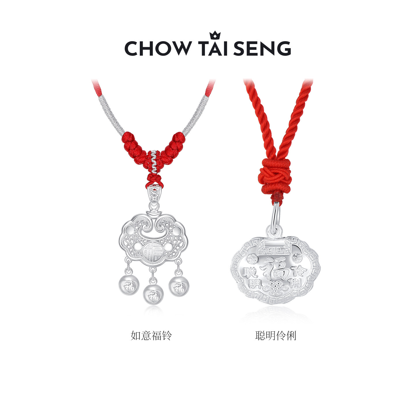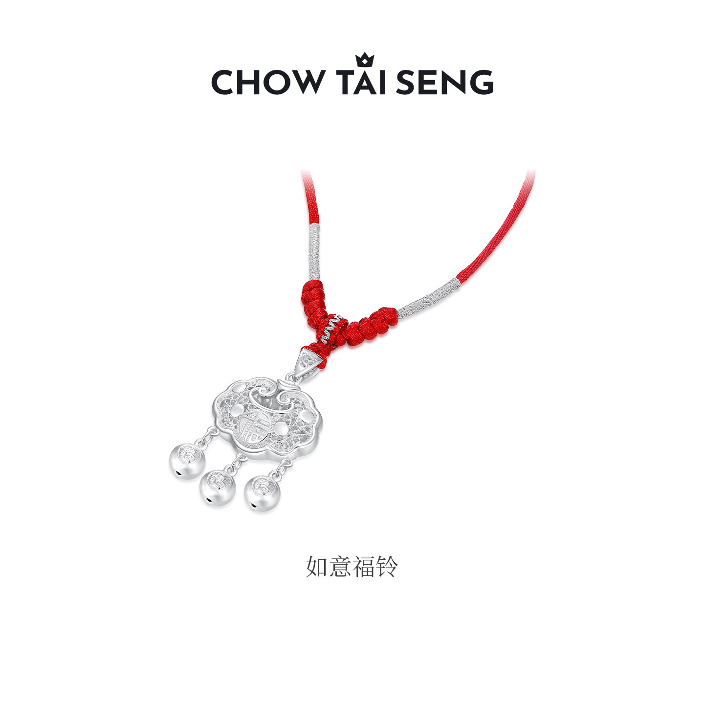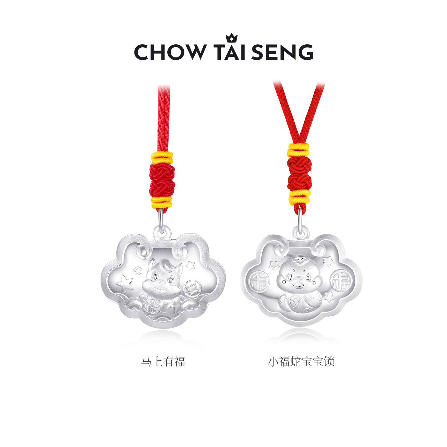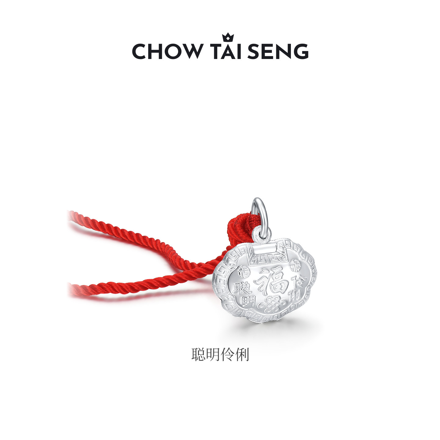 周大生S990足银平安长命锁宝宝吊坠款婴儿带编绳颈饰项链节日礼物