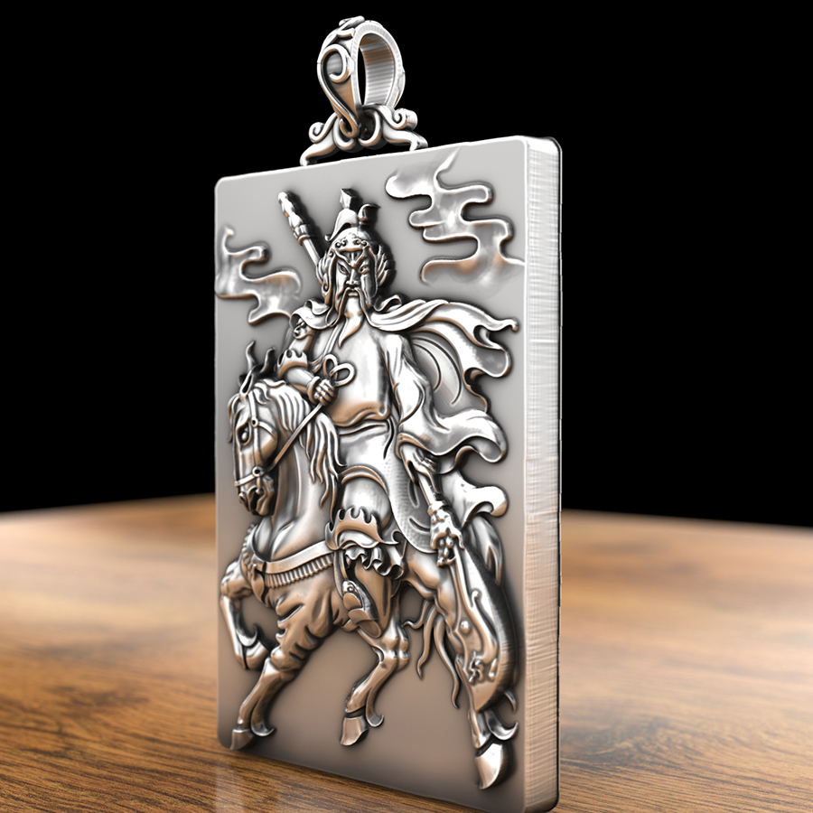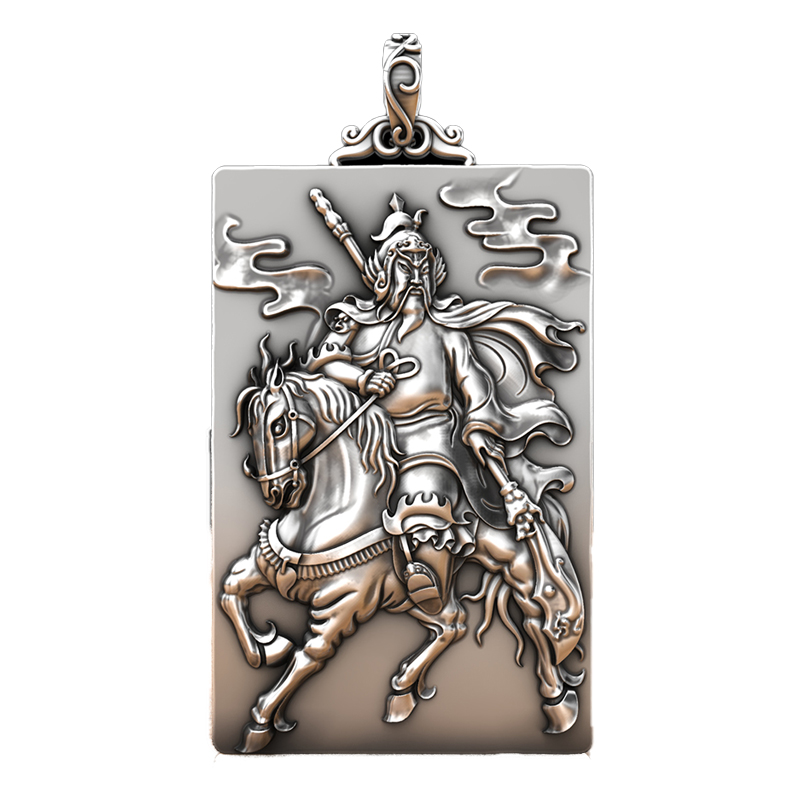 999纯银关公骑马吊坠项链男足银武财神关羽赤兔银牌车挂马上有钱