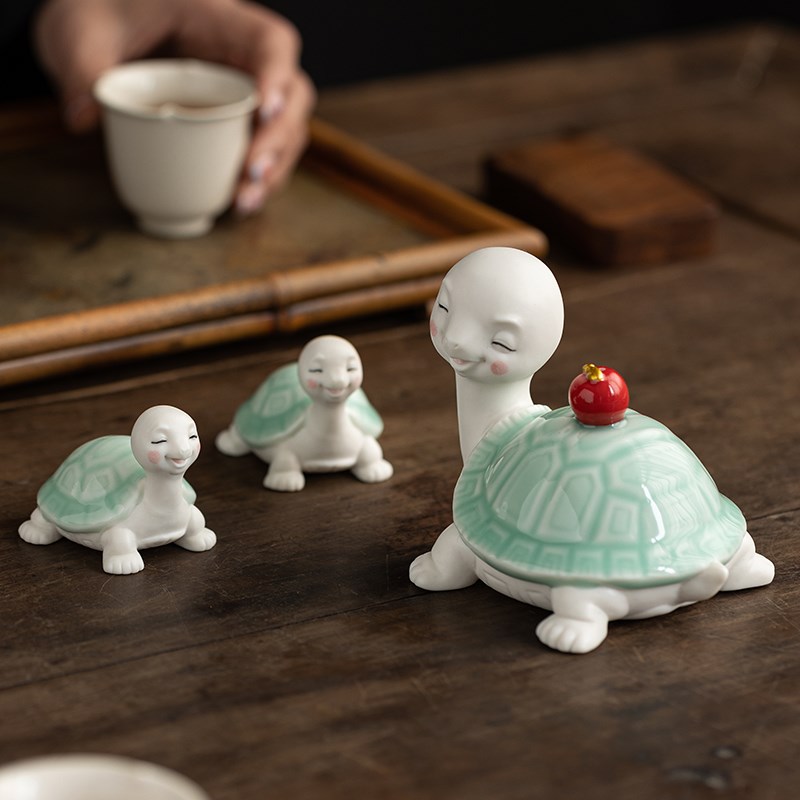 陶瓷小乌龟茶宠摆件可爱卡通长寿龟茶玩配件创意茶台茶桌小装饰品