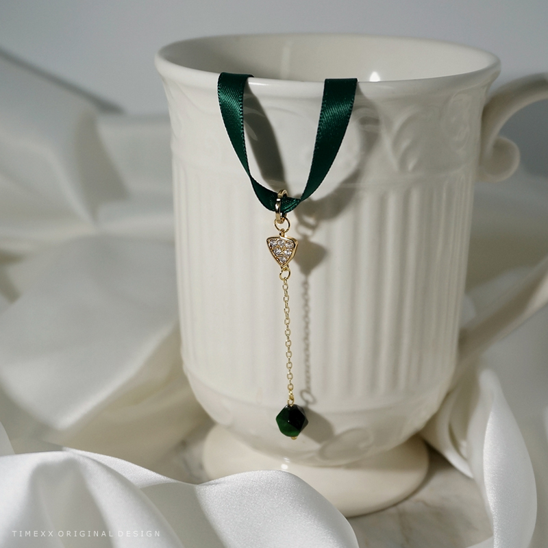TIMEXX原创天然虎眼石锆石短款chocker 24K镀金绿色颈链 手作项链