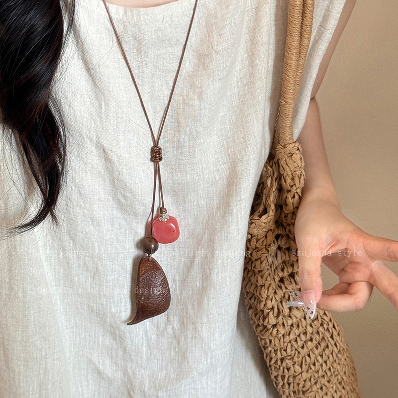 新中式复古文艺天然果实项链女秋冬2025新款挂脖毛衣链高级感配饰