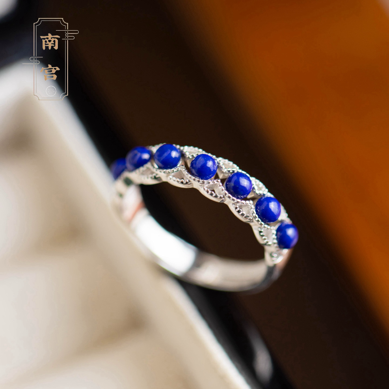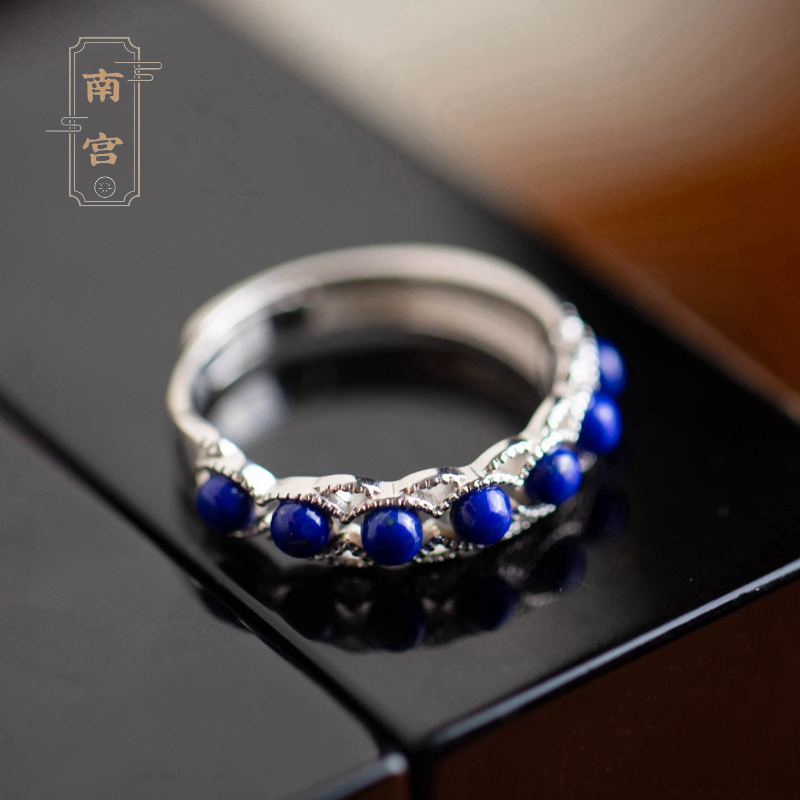 「南宫」S925纯银天然A级青金石蓝色戒指克莱因蓝高级感节日礼物