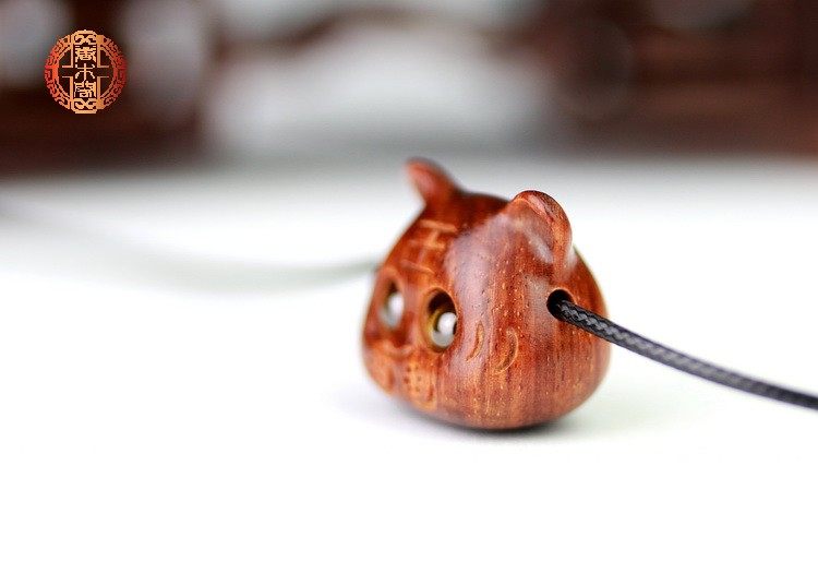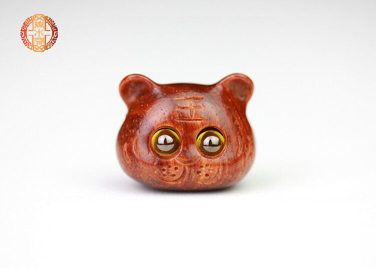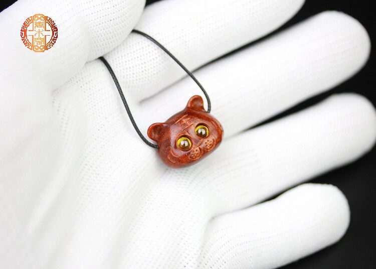 檀木本命年生肖虎吊坠紫檀木雕可爱老虎转运活珠生日礼物首饰