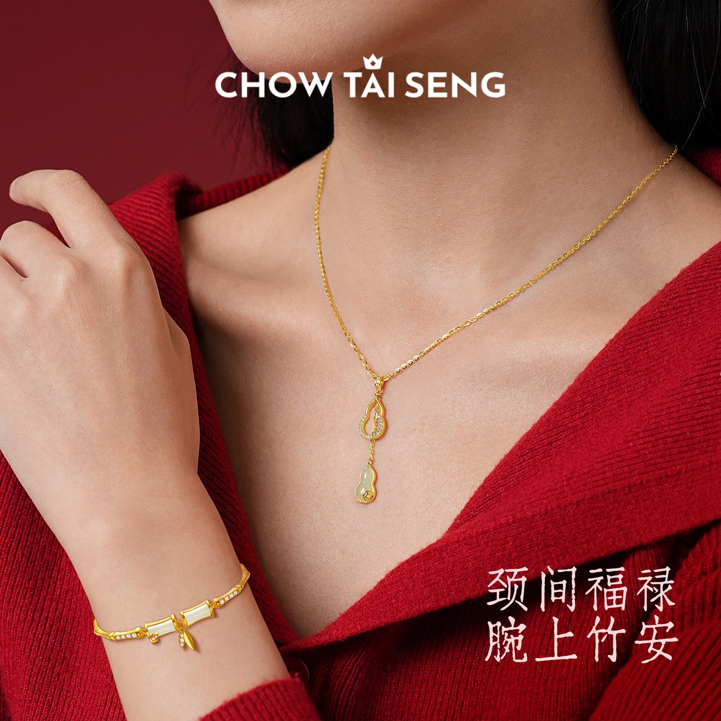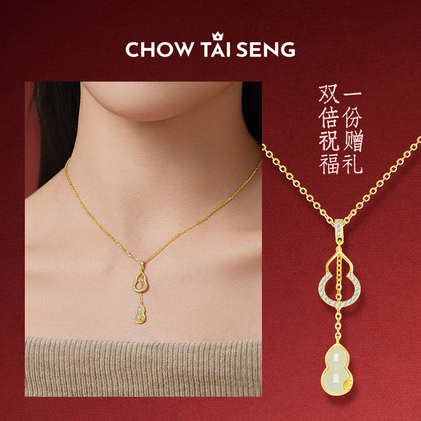 周大生葫芦和田玉纯银项链女白玉福禄新中式国风生日礼物送女友