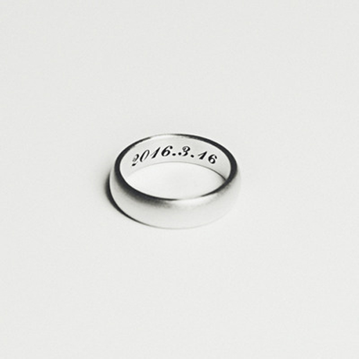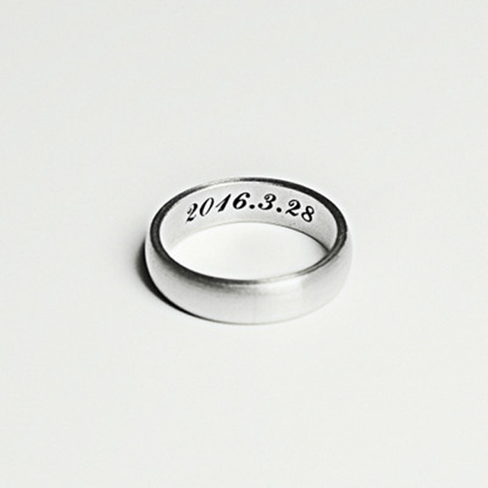 青树原创设计银饰纯银弧面喷砂刻字戒指男戒学生男女情侣对戒礼物
