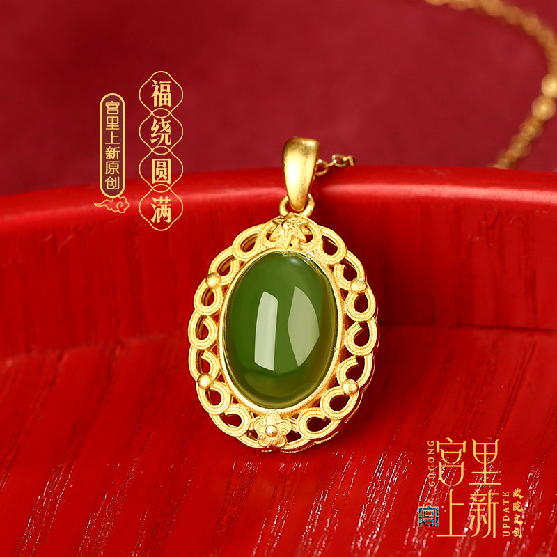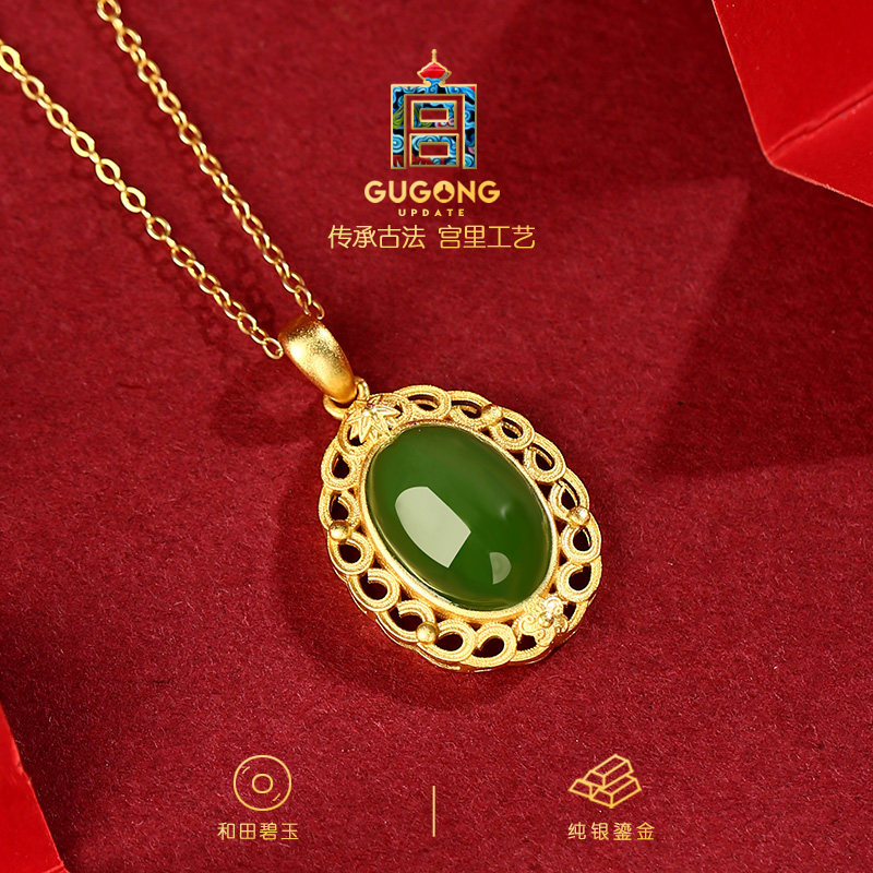 宫里上新和田玉吊坠女纯银碧玉项链绿色毛衣链国风生日礼物送妈妈
