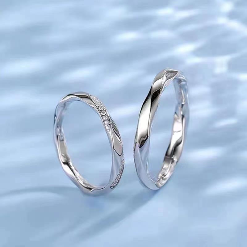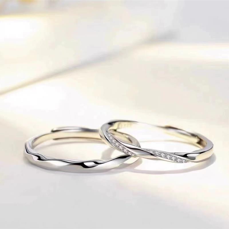 纯银S999情侣戒指一对戒开口结婚925小众七夕情人节礼物送男女友