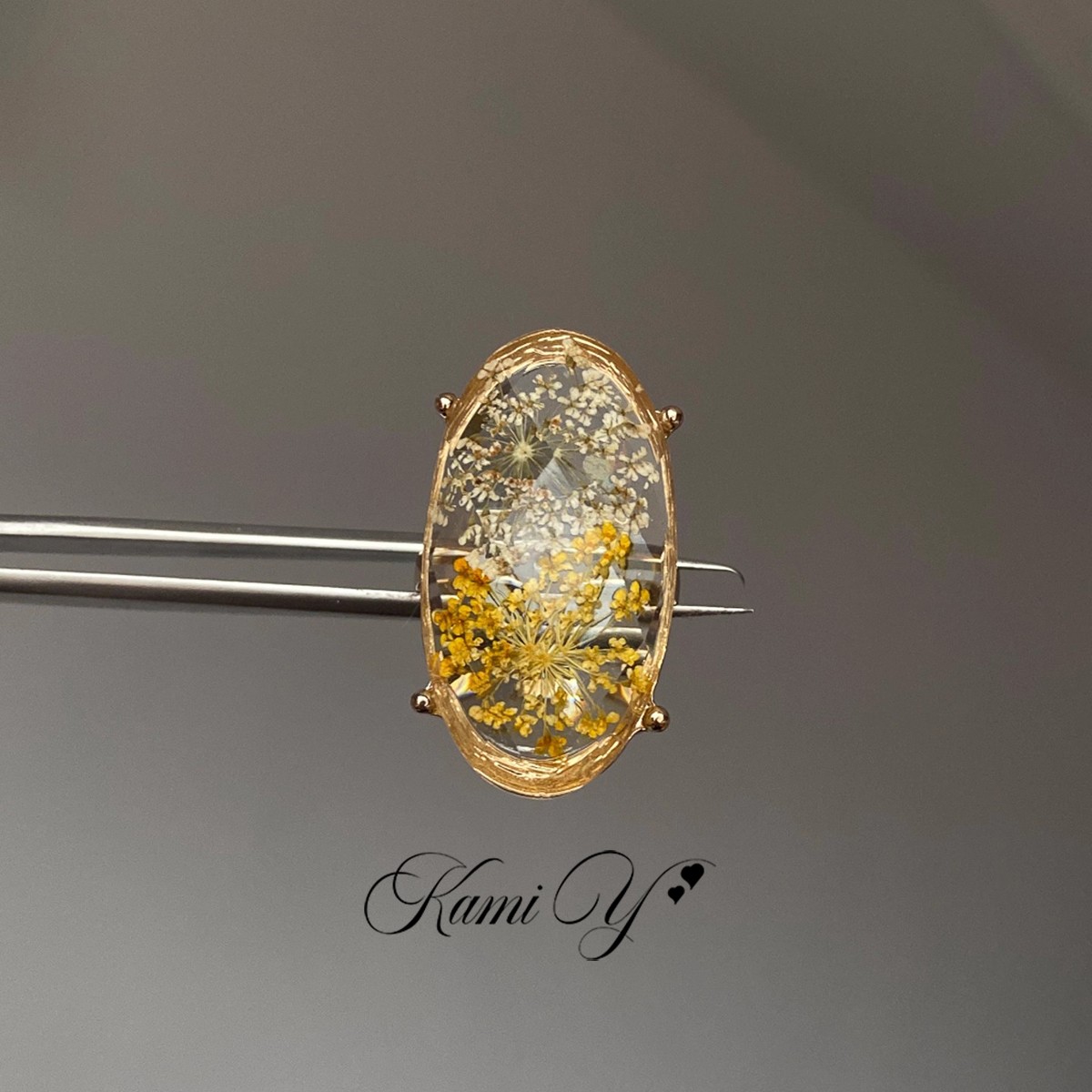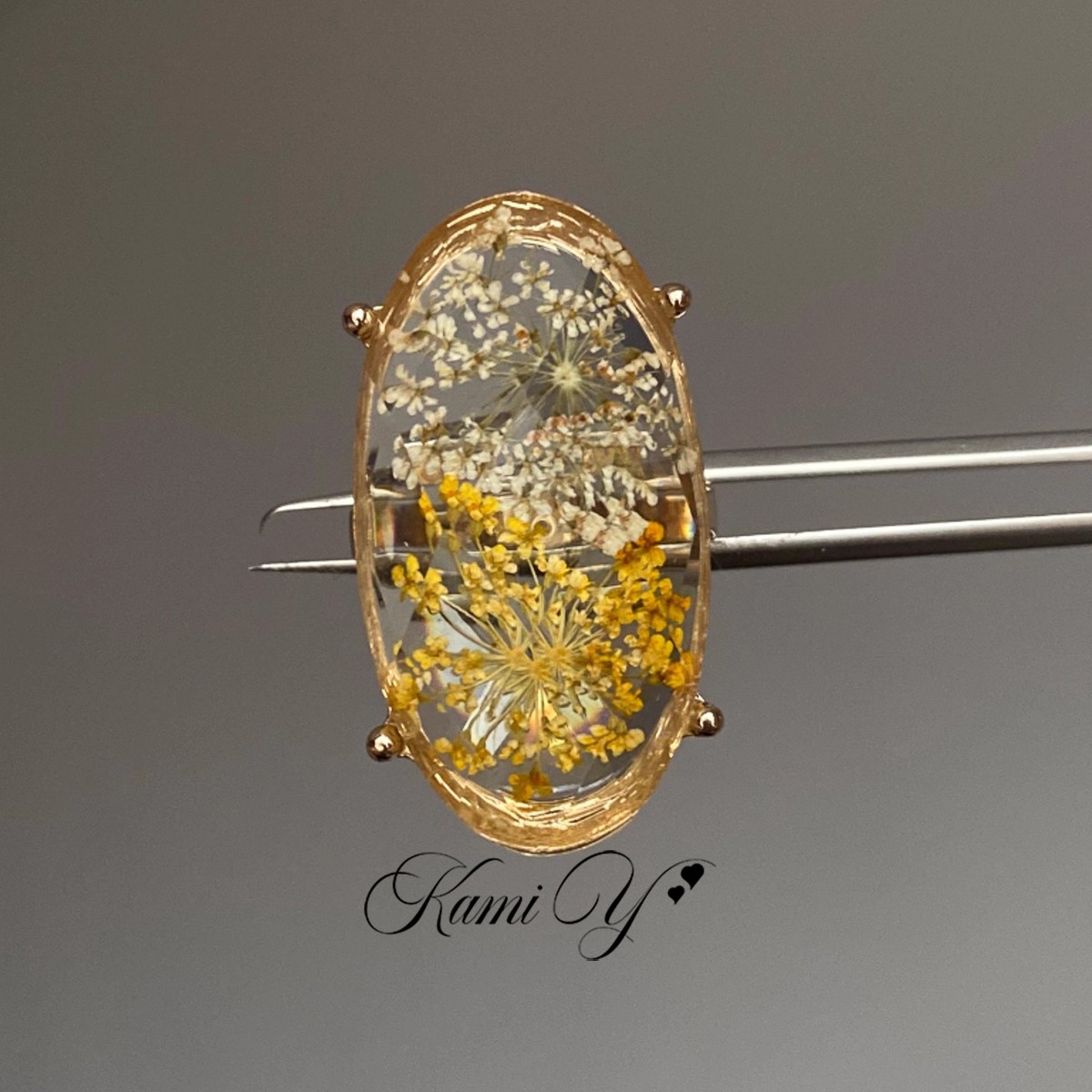 小众设计感滴釉干花琥珀大蛋面戒指女高级感时尚重工气质清新指环