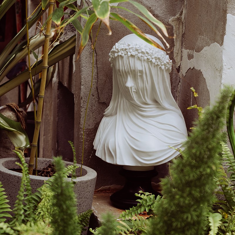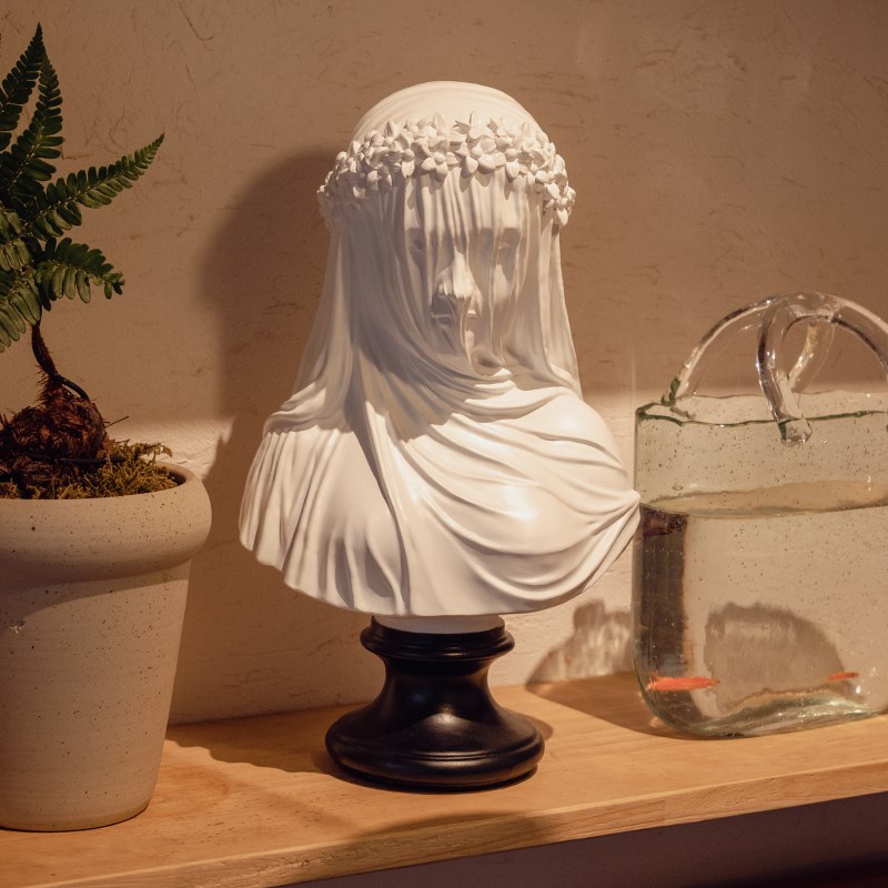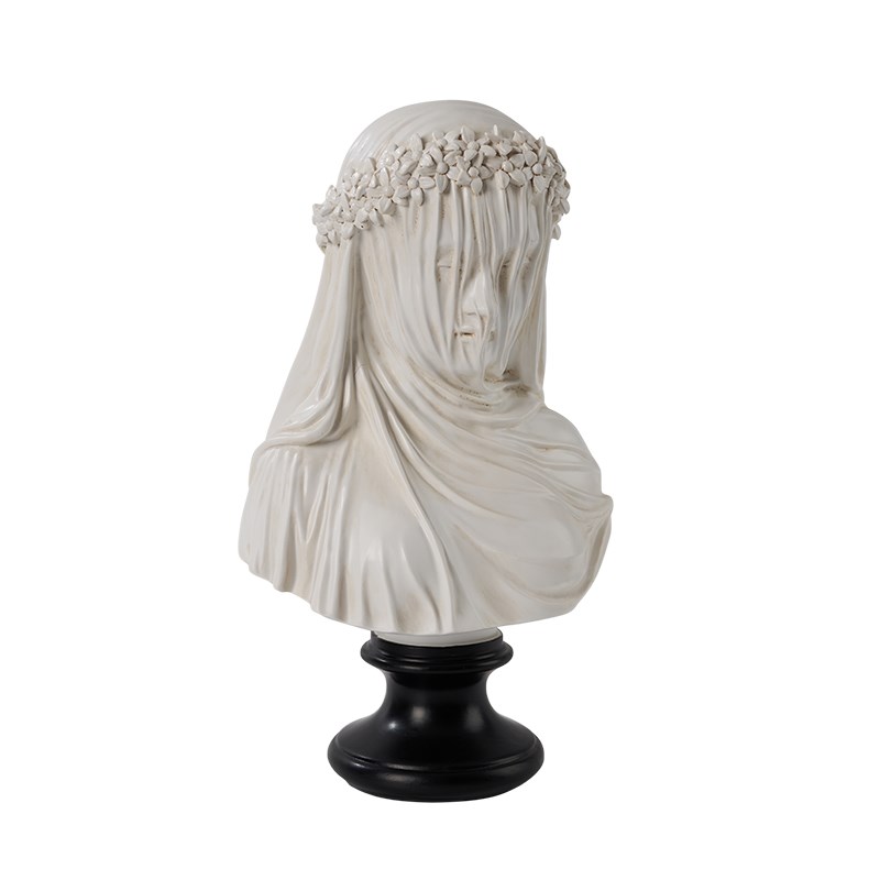 哥特式雕像艺术树脂面纱少女斗篷半身像新娘头纱胸像道具家居摆件