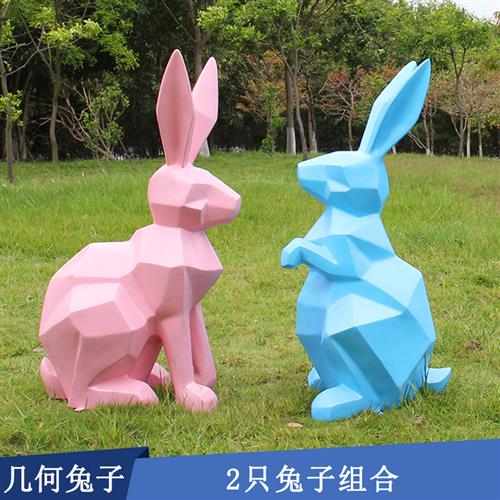 玻璃钢几何切面兔子雕塑户外园林景观小区地产公园动物装饰摆件大