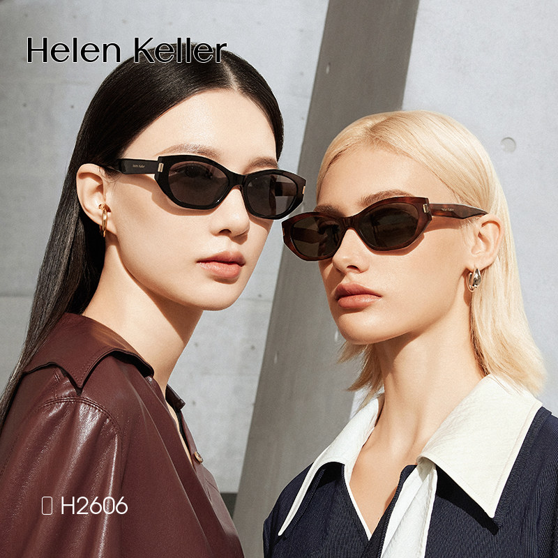 【情人节礼物】海伦凯勒可可镜潮流时尚优雅猫眼框墨镜女H2606