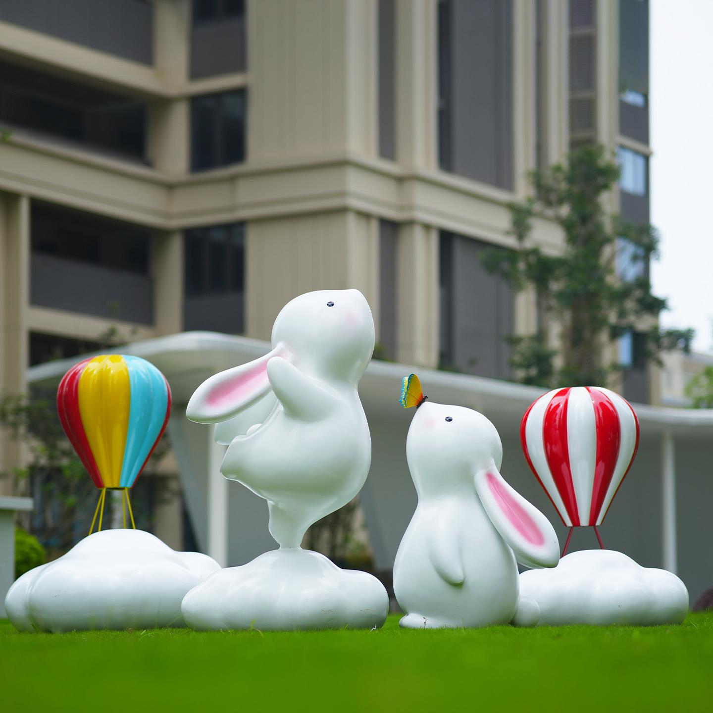 玻璃纤维卡通兔子座椅雕塑户外社区草坪样品屋展示中心幼儿园林景