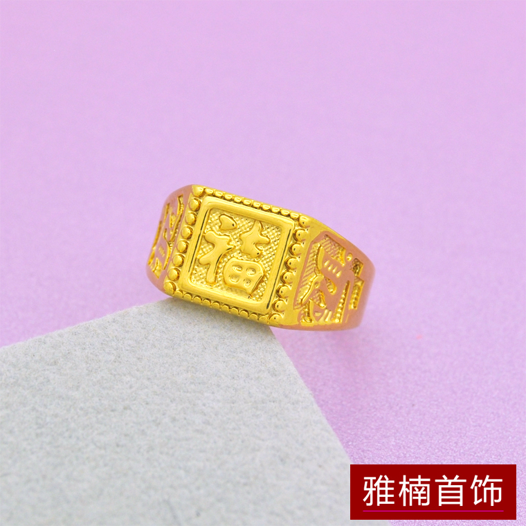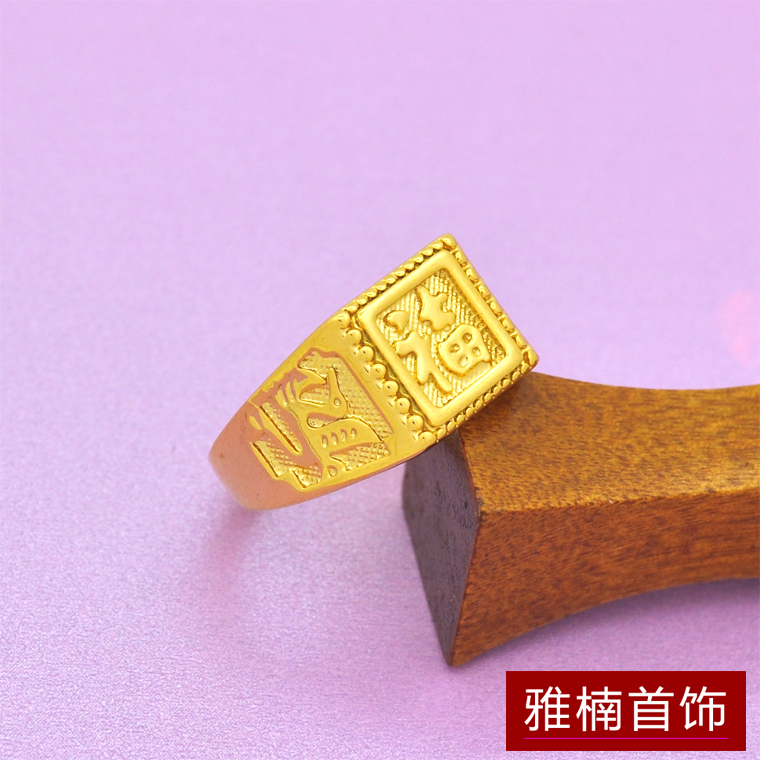 可调节大小仿真黄金厚金小号福字方戒镀24K金色久不掉色男款戒指