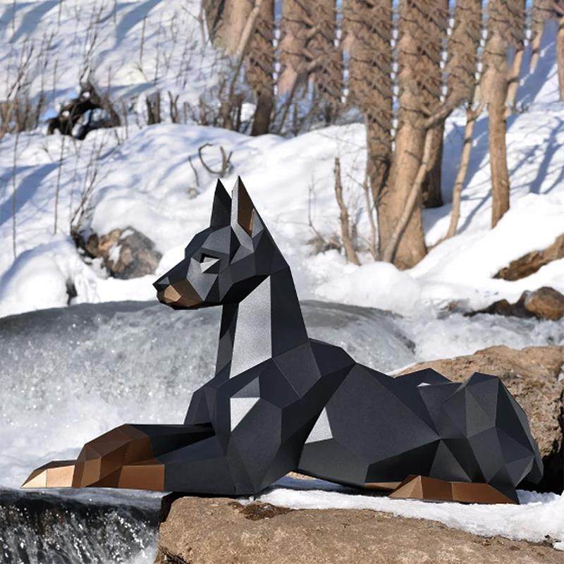 100厘米长 卧立杜宾犬现代创意纸模立体家居装饰落地大型动物摆件