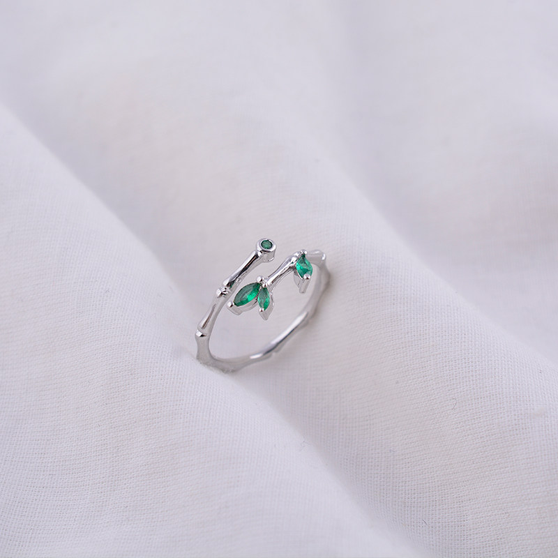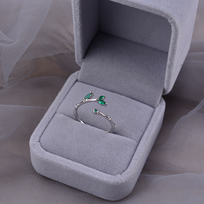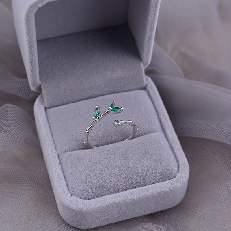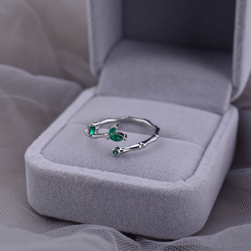 925纯银戒指绿色叶子指环小众设计有你竹够中国风高级轻奢ins刻字