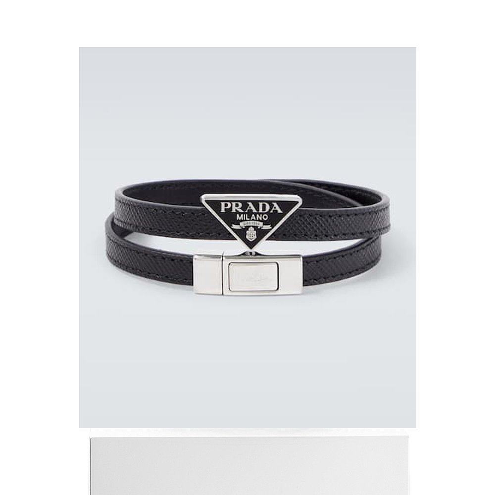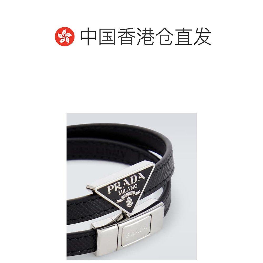 1h可退 香港直邮潮奢 Prada 普拉达 男士 小牛皮手链 black黑色