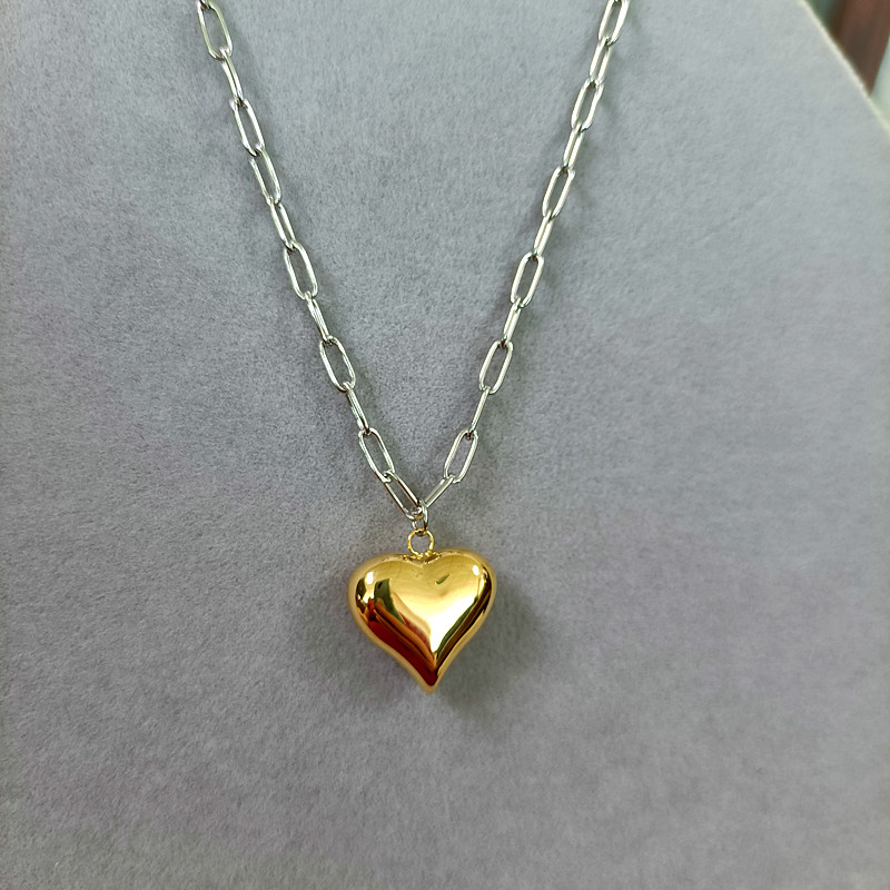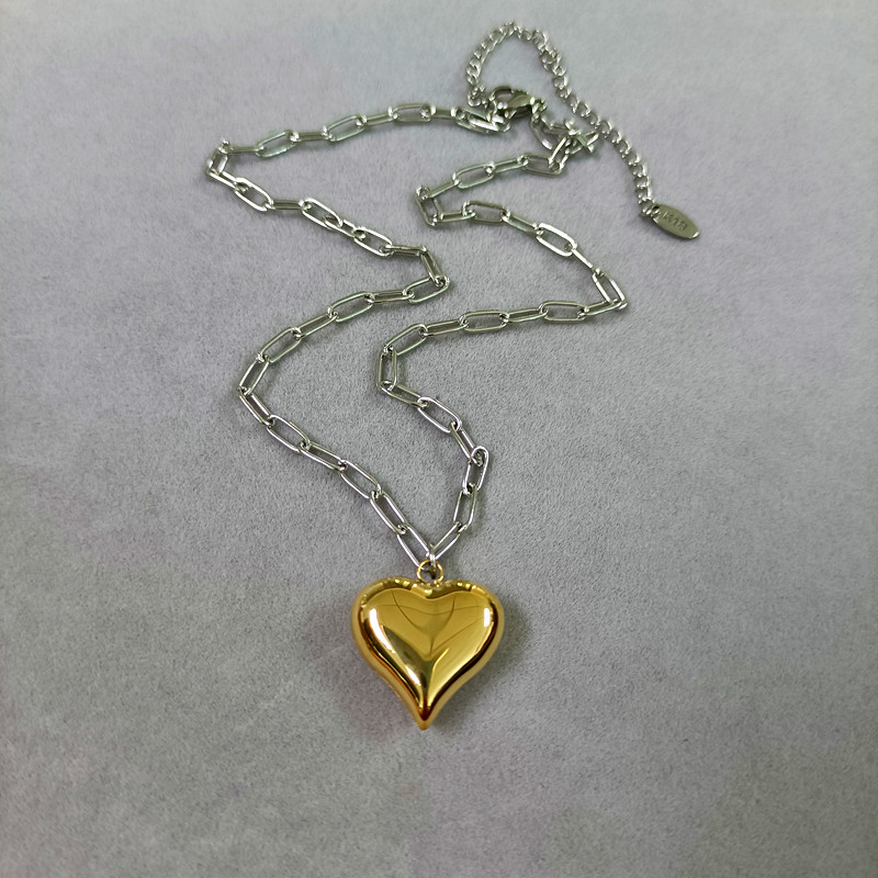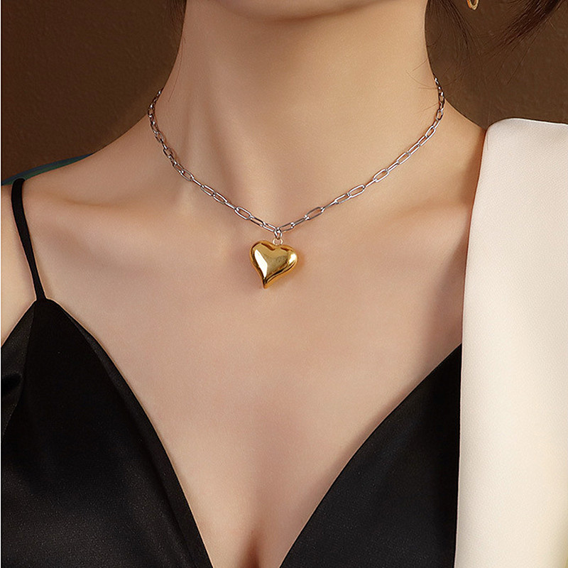 欧美法式复古爱心桃心形吊坠项链女夏小众金银撞色ins拼色锁骨链