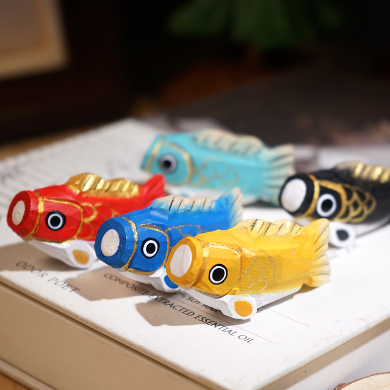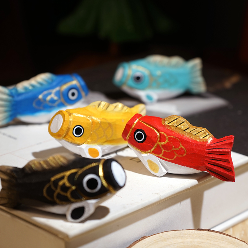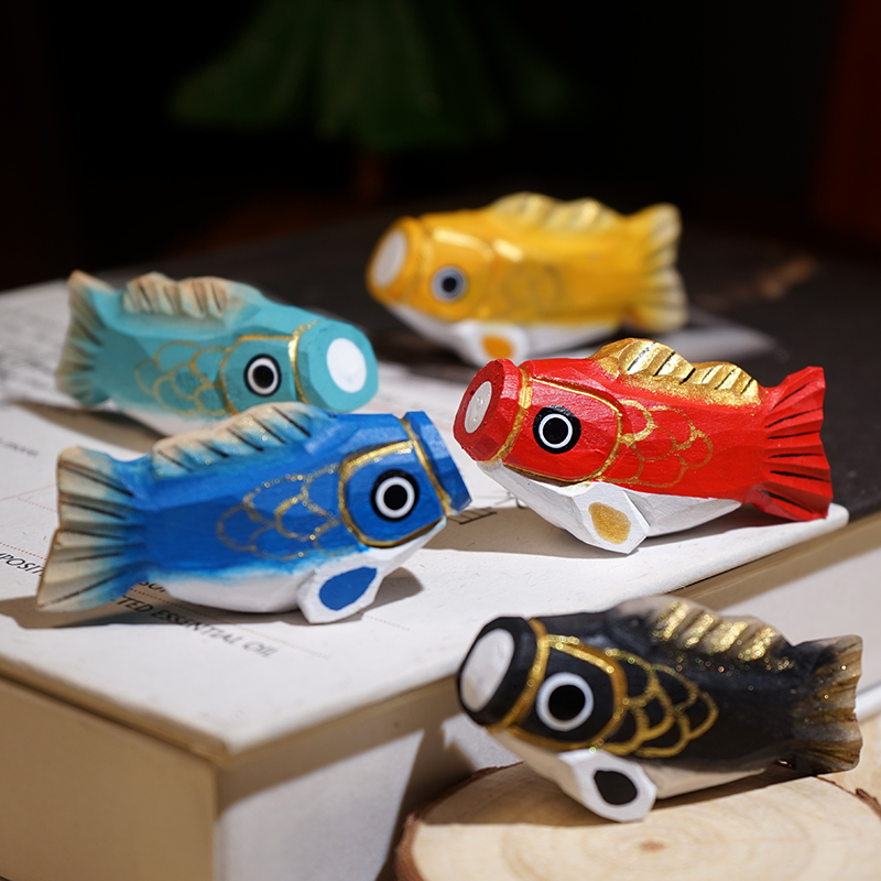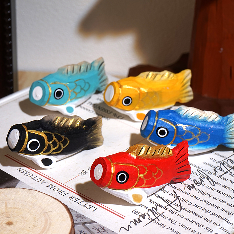 “幸运锦鲤 好运连连”手工木雕小摆件好意头祝福办公桌面装饰品