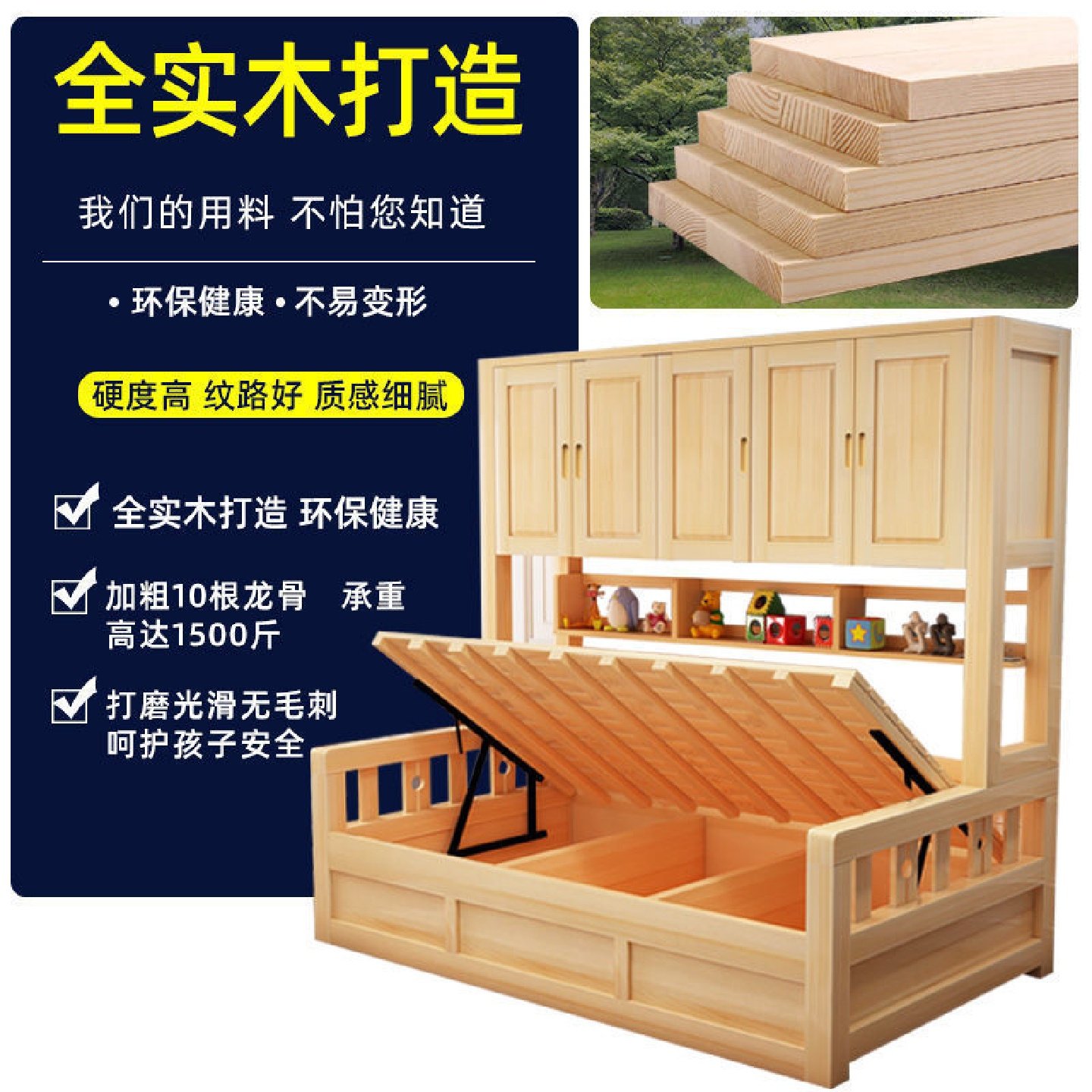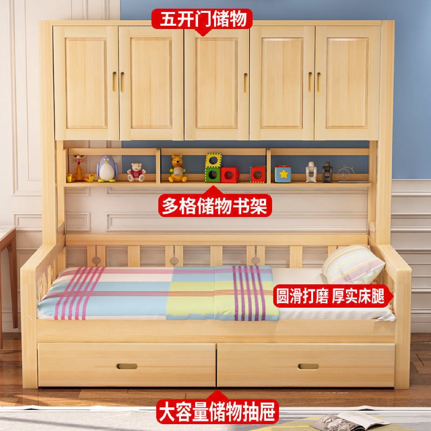儿童衣柜床榻榻米带衣帽间实木带柜子多功能组合小户型床柜一体床