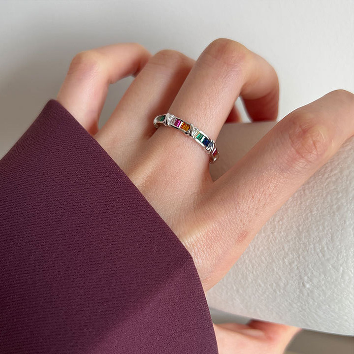 925纯银彩色锆石开口食指戒指女小众设计轻奢高级感2025新款爆款