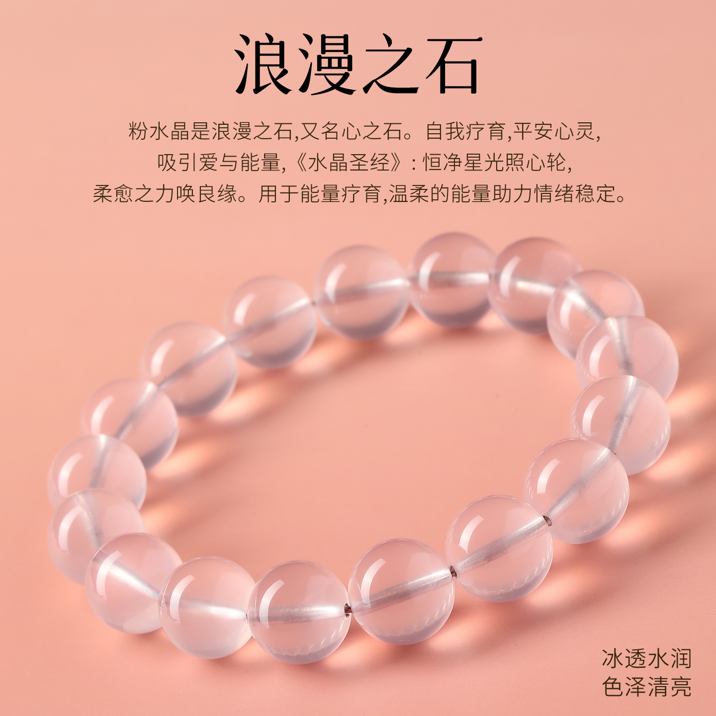 天然冰种马粉水晶手链女官方旗舰店串珠招桃花玉石果冻体粉色手串
