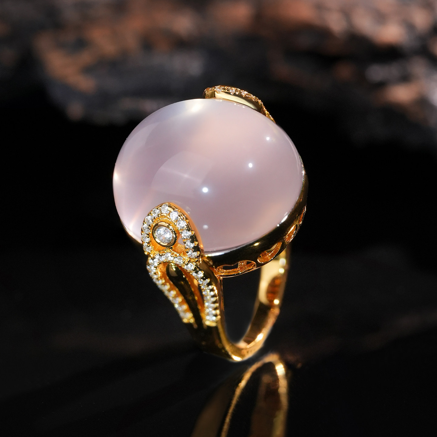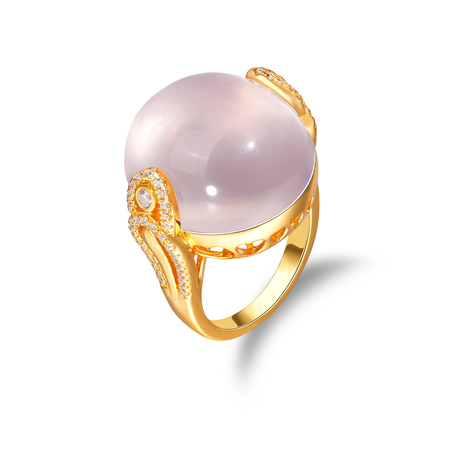 VISING珠宝31ct左右天然莫桑比克星光粉水晶鸽子蛋戒指S925银镀金