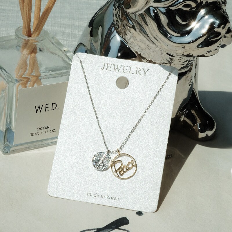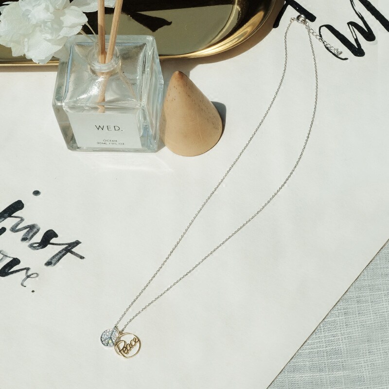 韩国进口气质百搭甜美反战和平标志锁骨链锆石微镶圆牌字母项链女