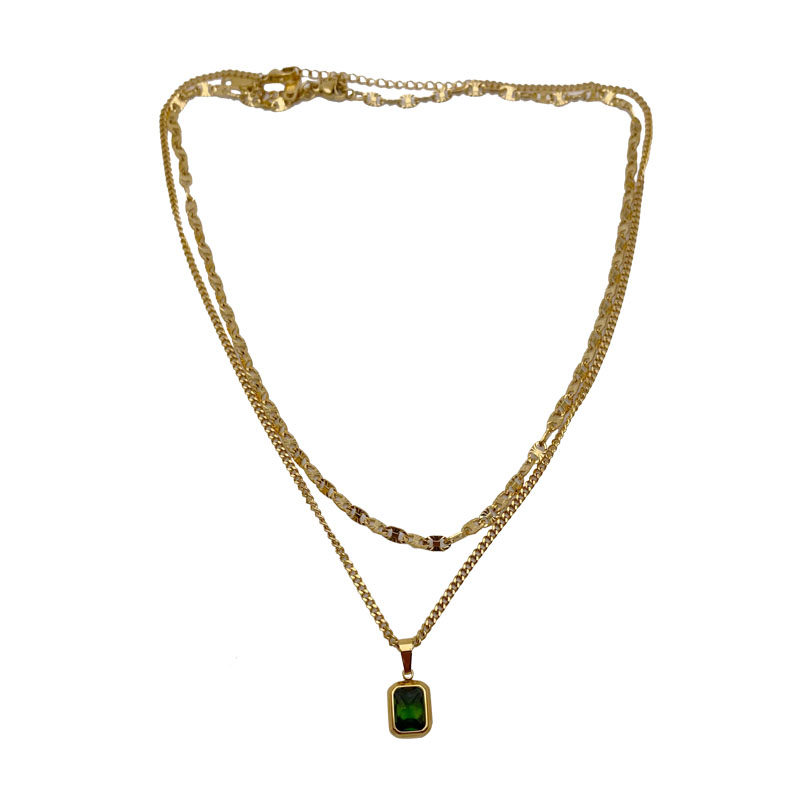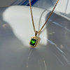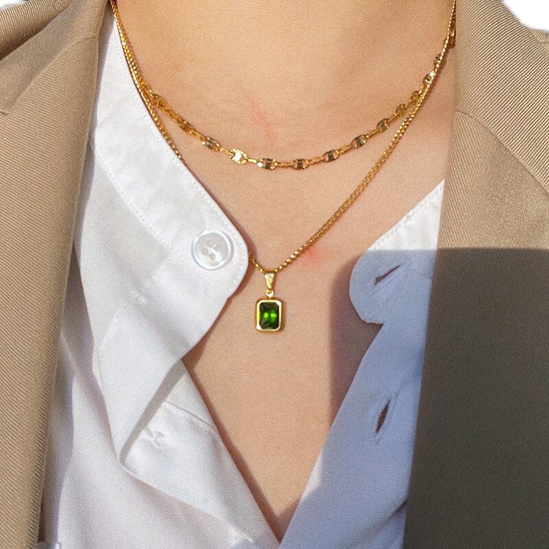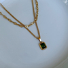 耳边铛184原创设计钛钢双层复古绿色方形项链吊坠ins锁骨链毛衣链