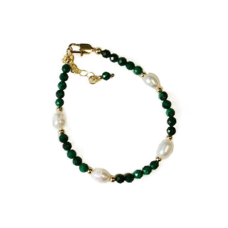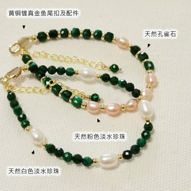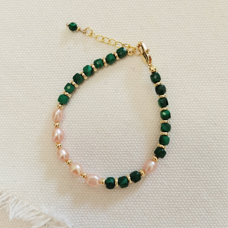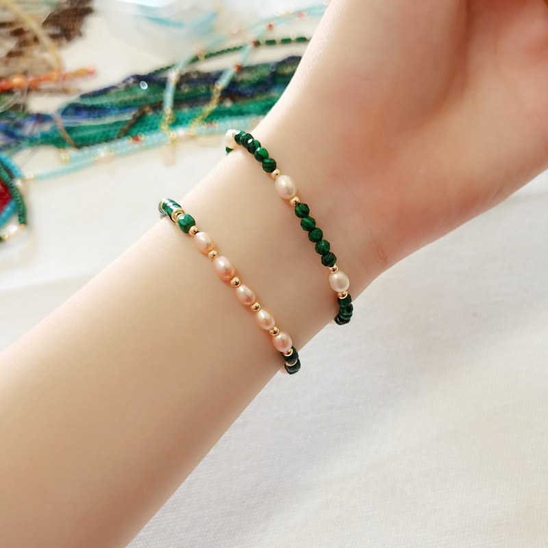 天然绿色孔雀石粉色淡水珍珠手链女款原创轻奢小众精致串珠手串