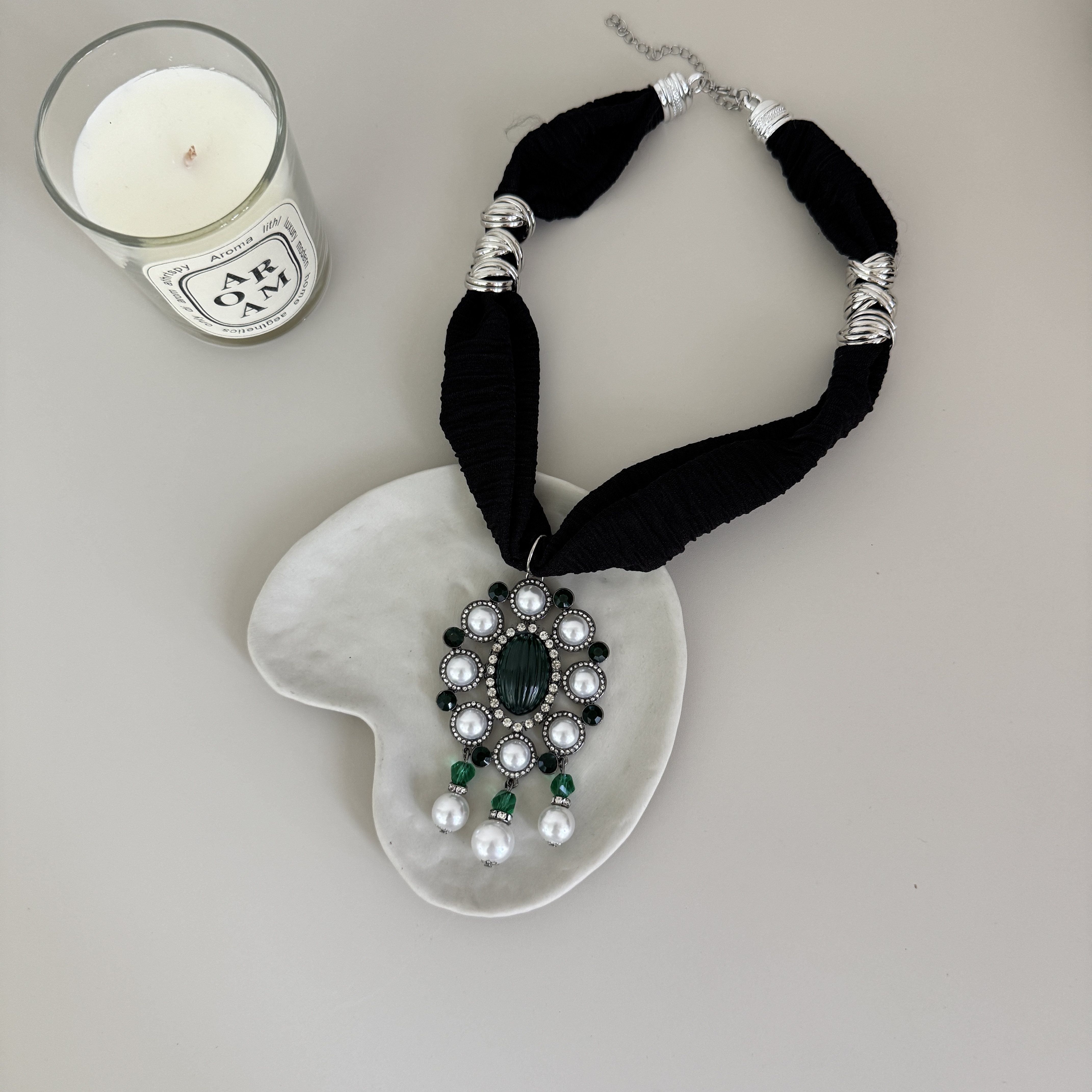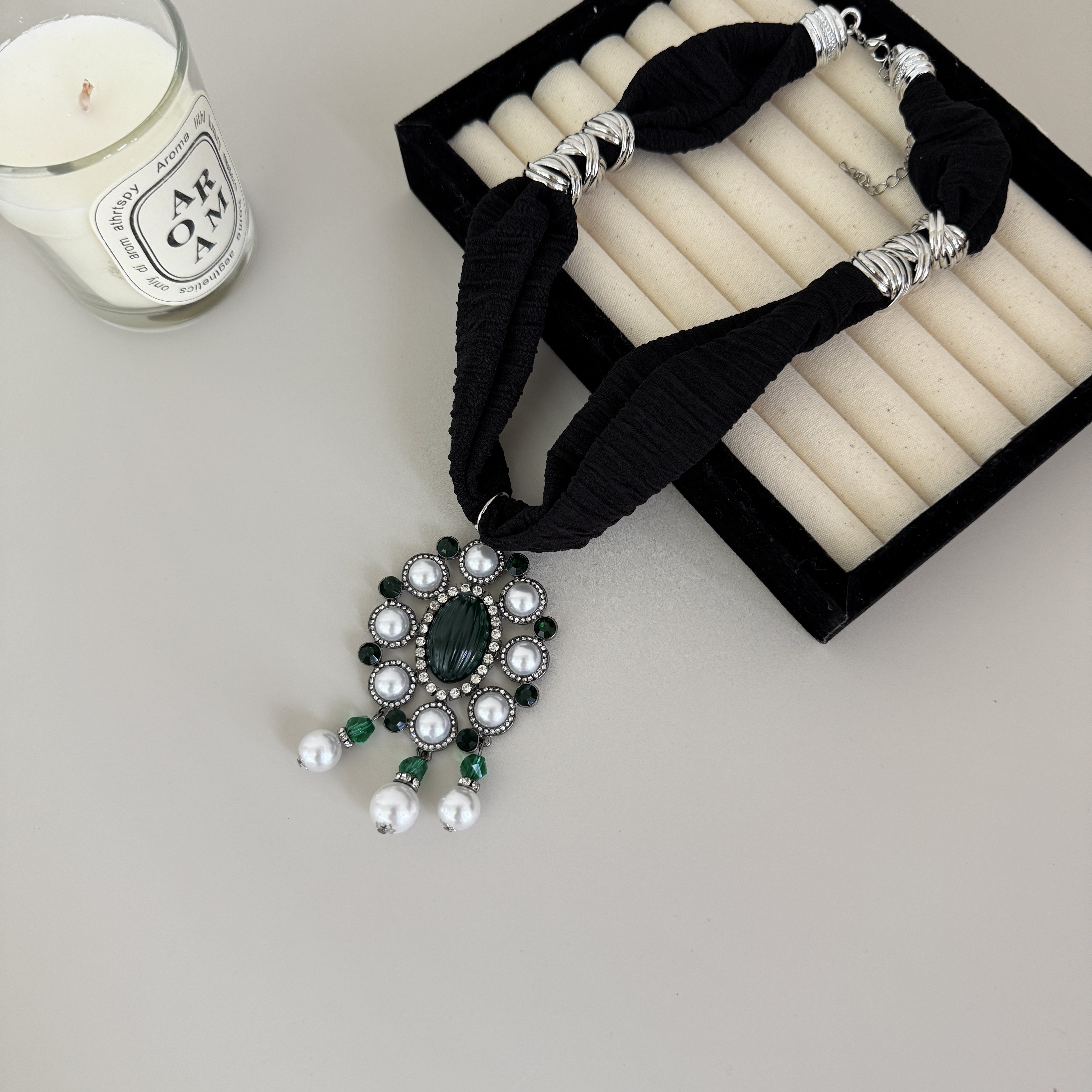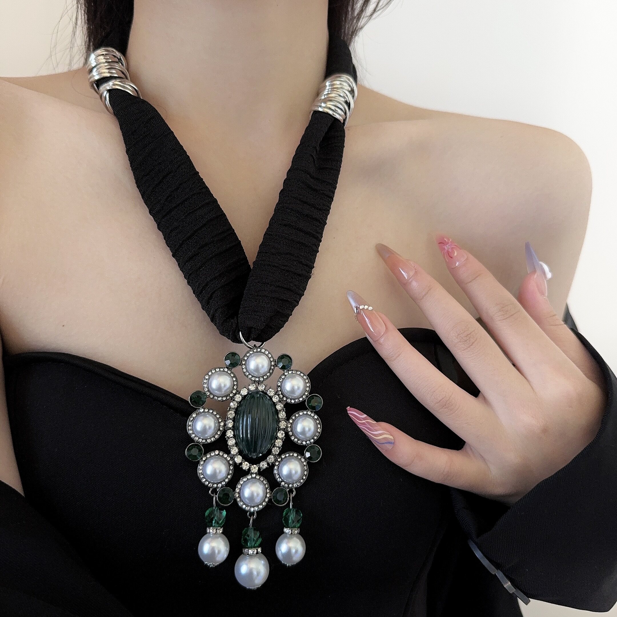 宫廷风珍珠翠绿色夸张吊坠项链流苏珍珠高级时尚气质锁骨链毛衣链