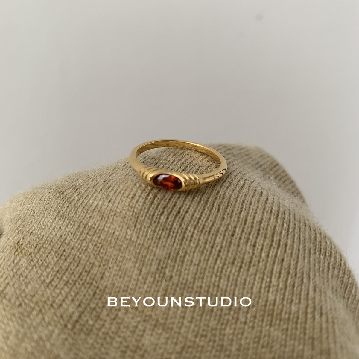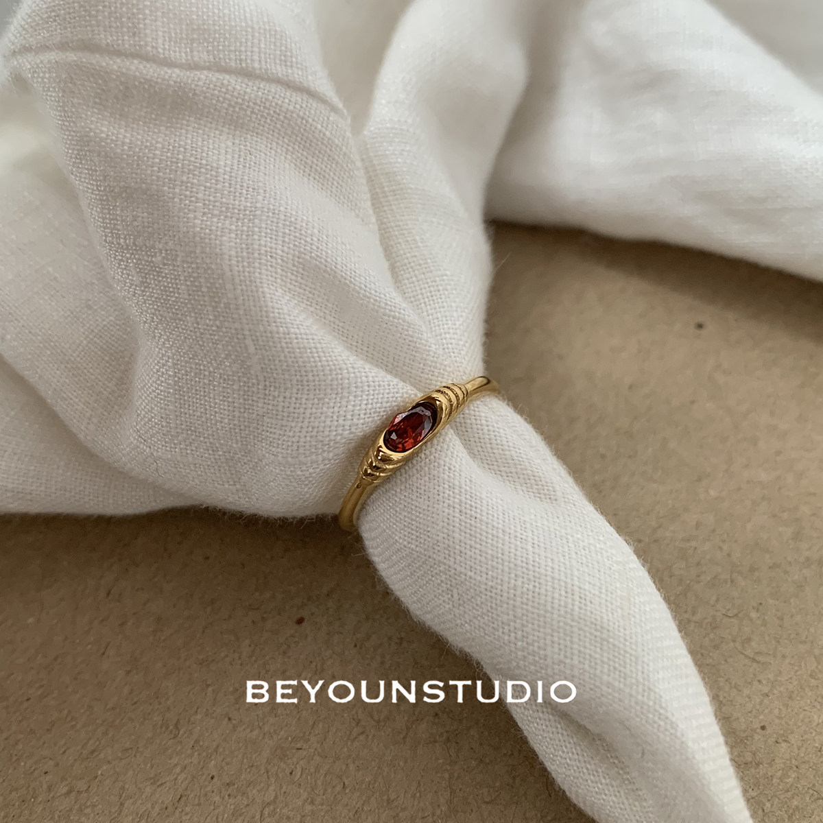 ZUORAN 法式复古宫廷风高级红色锆石时尚贵气钛钢镀金色戒RF108