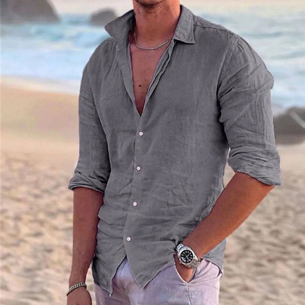2024 New Men's Shirt Cotton linen Fashion Casual Polo Neck B