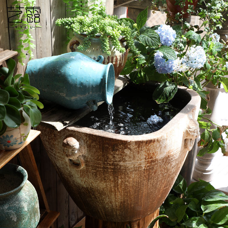 复古陶瓷仿古大缸粗陶手工圆坛方水缸大花盆鱼缸落地摆件庭院园林