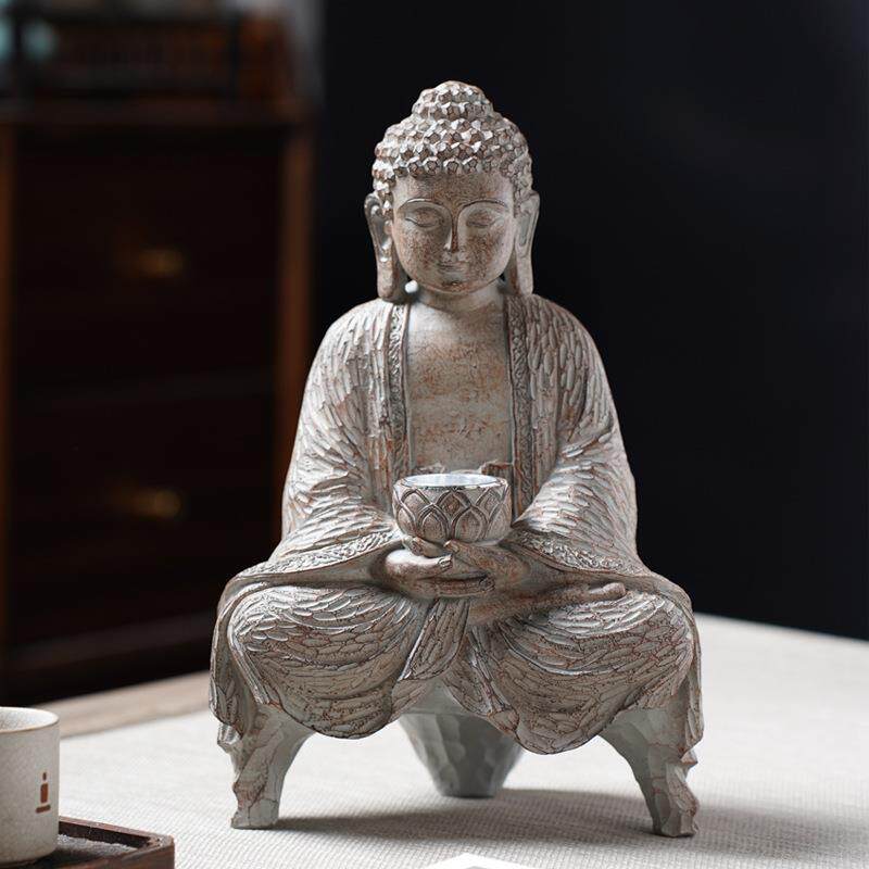 禅意花园佛像摆件太阳能灯庭院阳台新中式佛客厅玄关装饰摆设乔迁