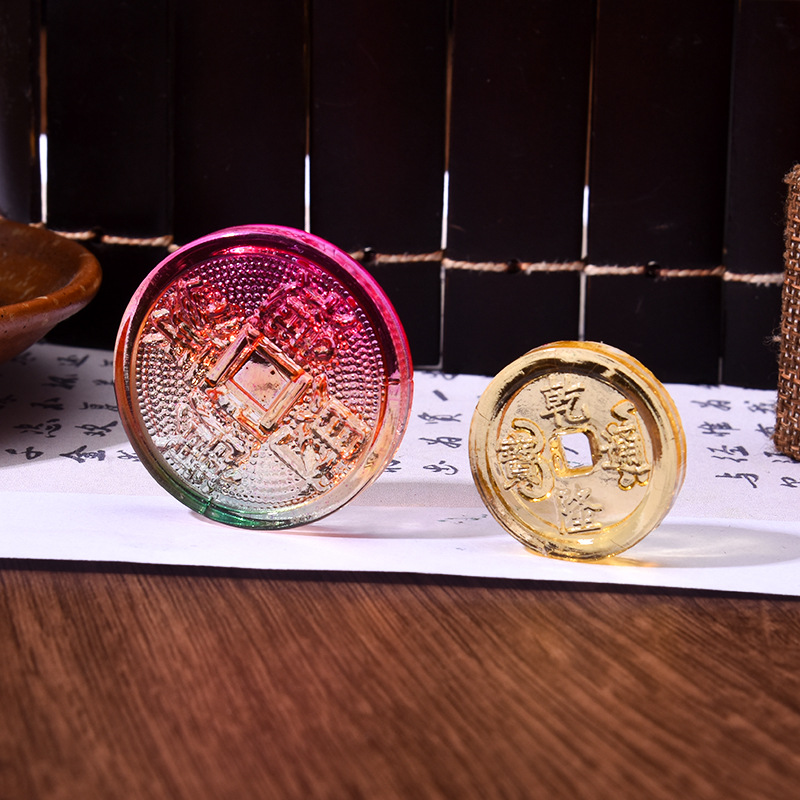 黄水晶钱币摆件家居乔迁开业财源广进钱币工艺品装饰招财仿古