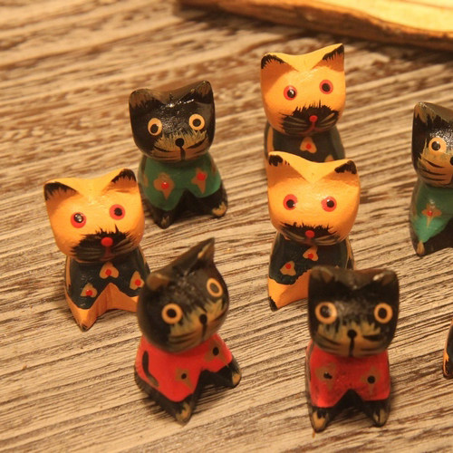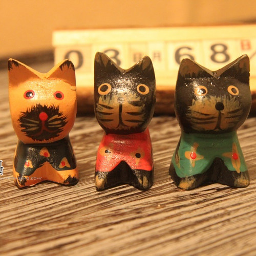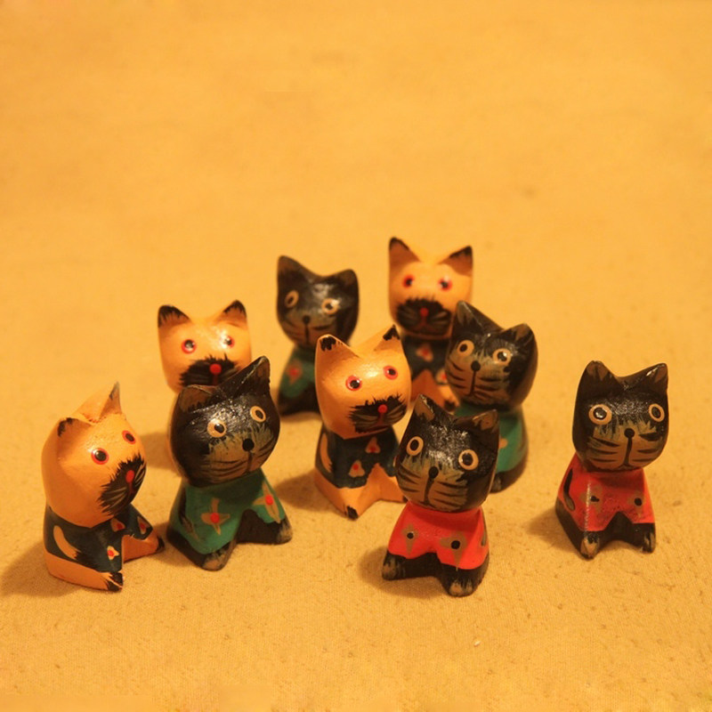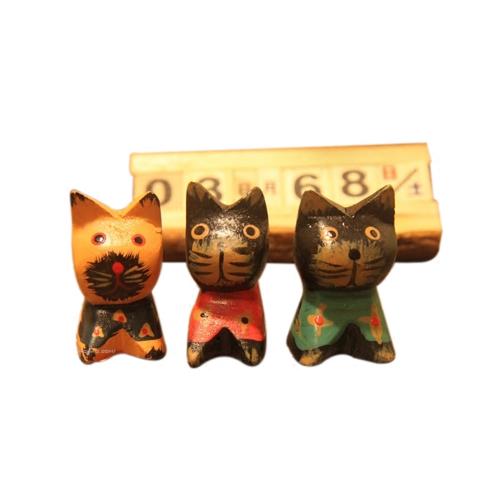 【宅原品】巴厘岛原木手工彩绘木雕 迷你可爱猫 木质ZAKKA摆件