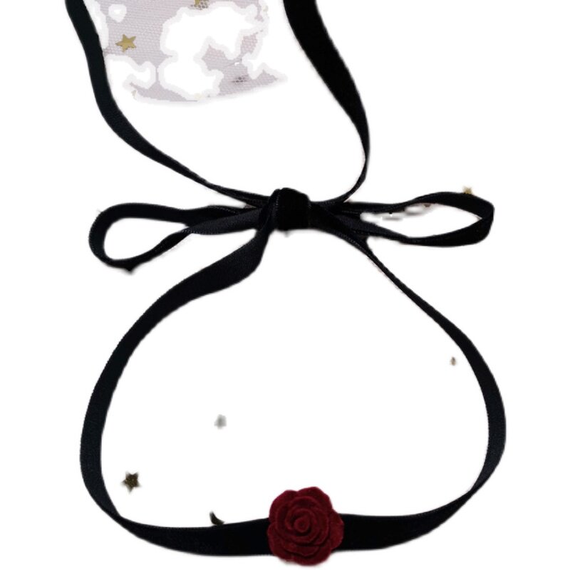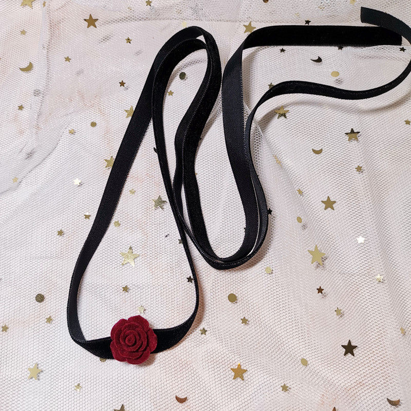原创 复古红色山茶花颈带项圈短款锁骨链ins风性感绑带美背百搭