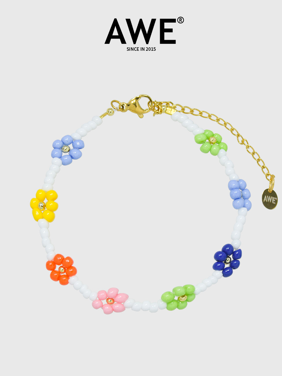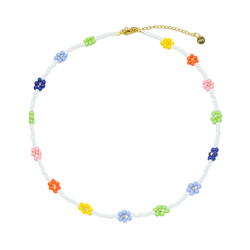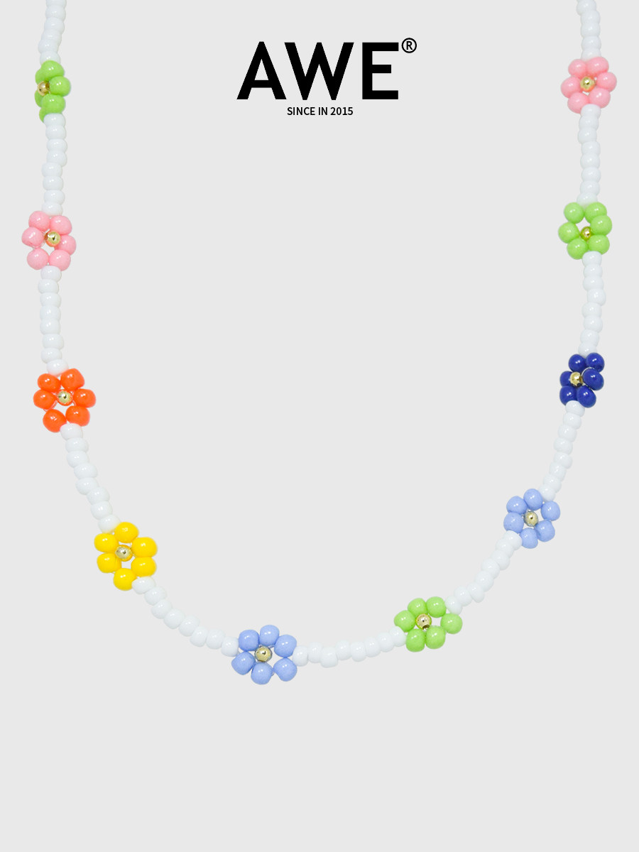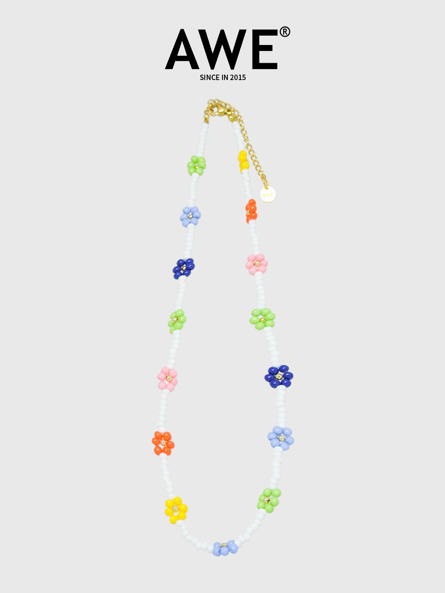 AWE彩色米珠串珠小花项链女姜涩琪明星同款多巴胺穿搭锁骨链颈链