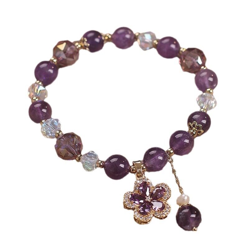天然优雅紫水晶手链女轻奢复古五㸤花吊坠手串手环闺蜜姐妹链饰品