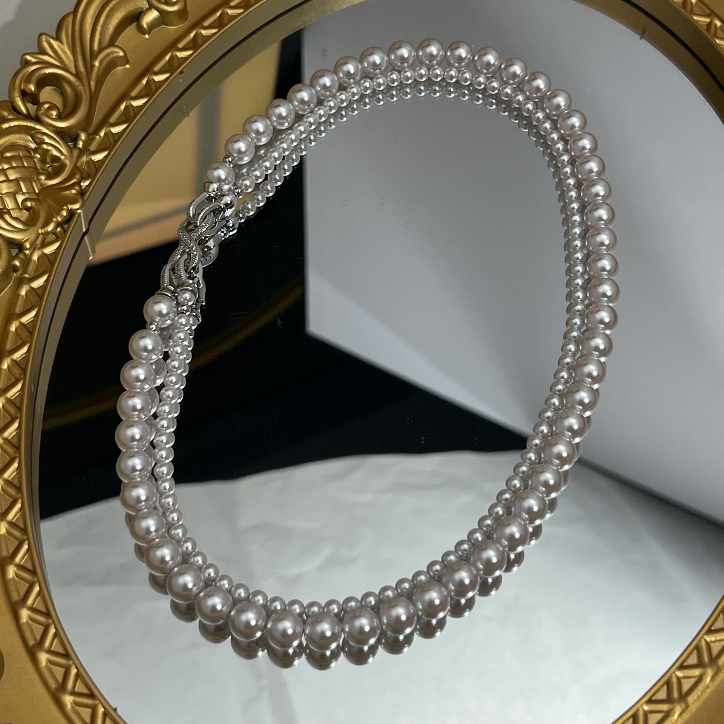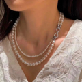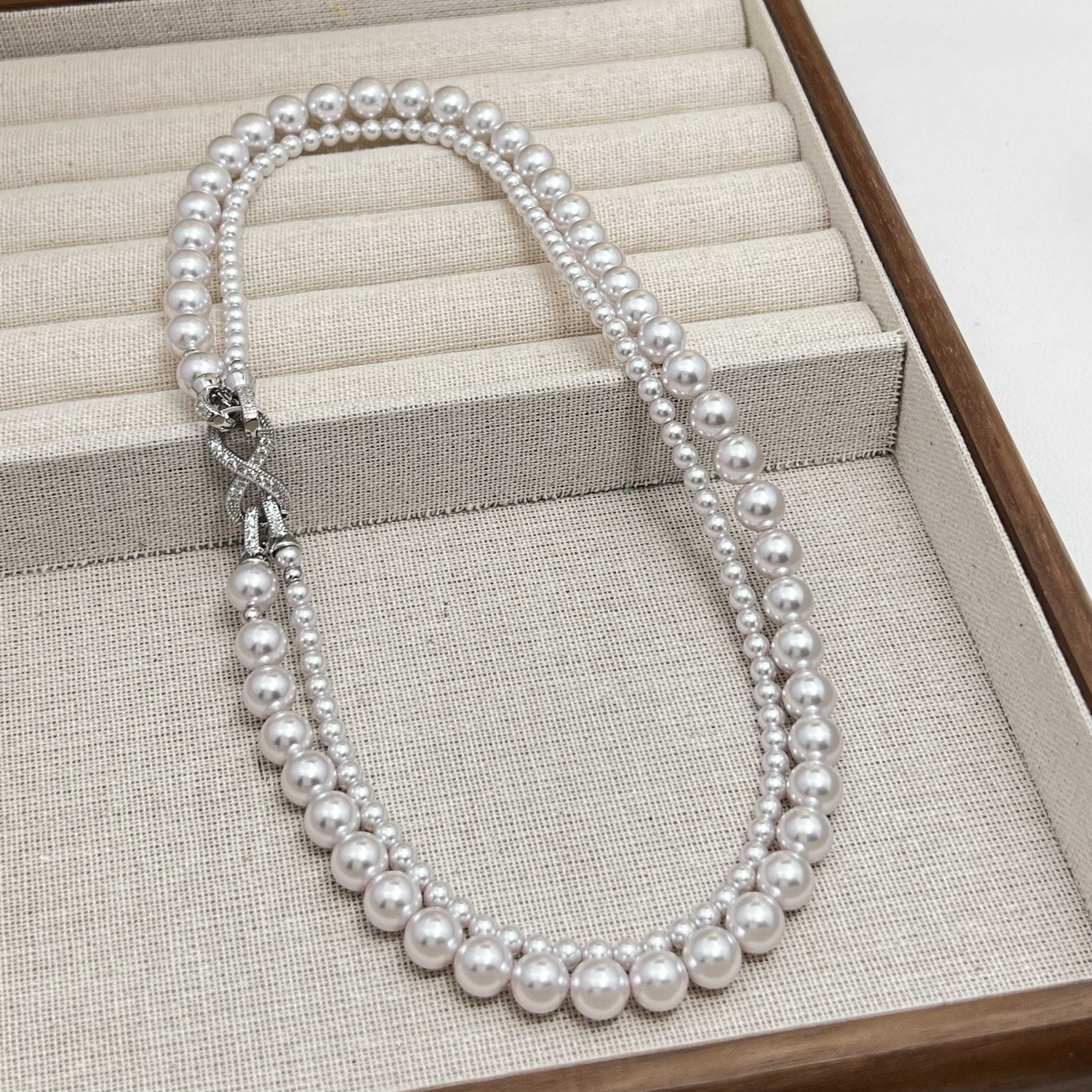 施家曼塔玫瑰粉紫色珍珠项链 多种戴法 轻奢高级法式锁骨链毛衣链