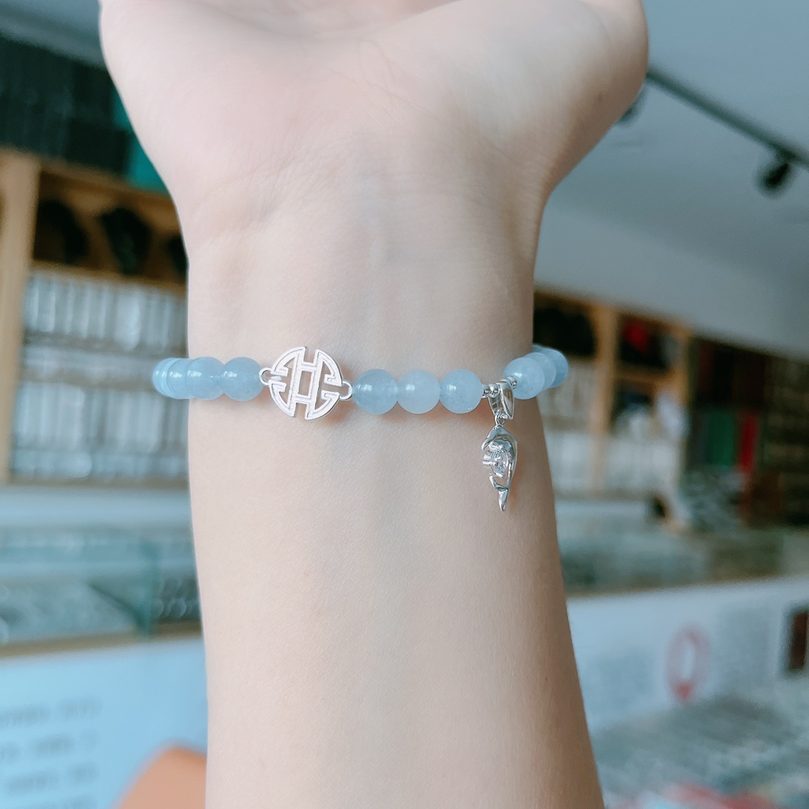 990足银海蓝宝纯银手串艾斯银饰蒙古元素手工两圈三圈单圈手链女