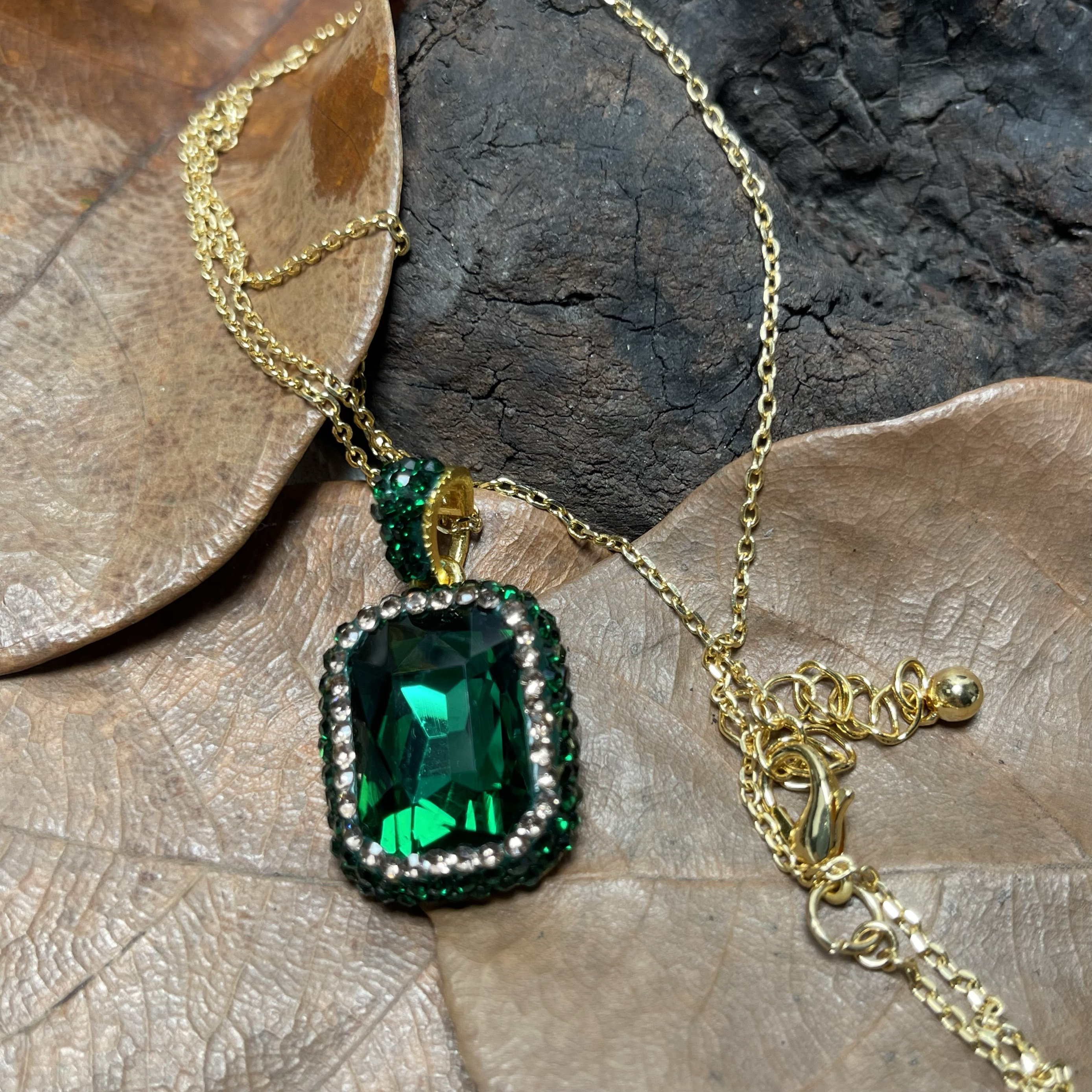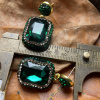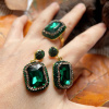 施华洛绿色夸张个性镶捷克钻铜镀金可调节戒指耳环项链高级感套装
