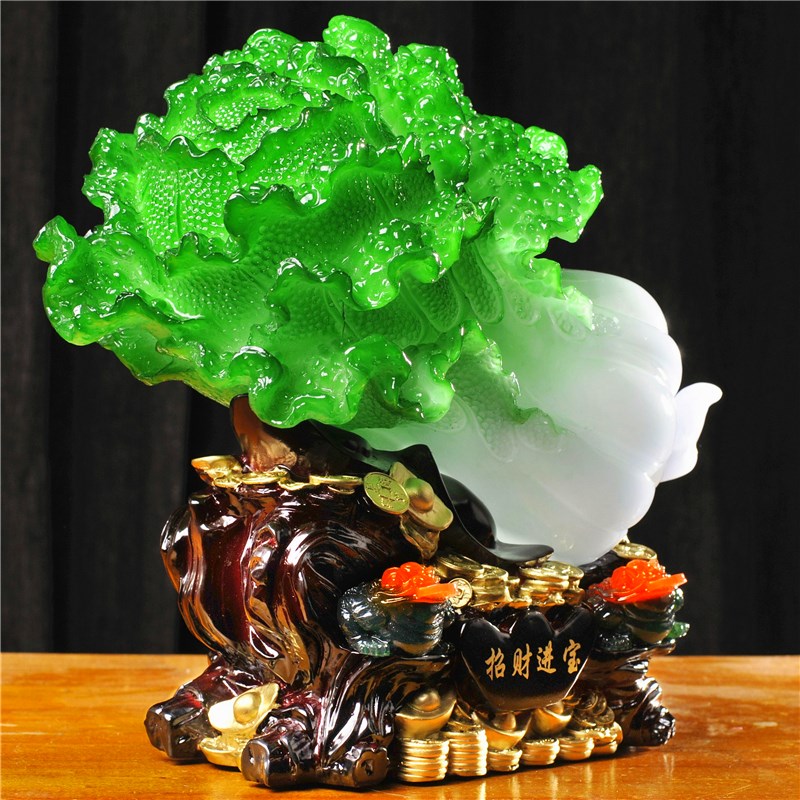 速发玉白菜摆件招财大号金蟾客厅玄关电视酒柜店铺工艺装饰品开业