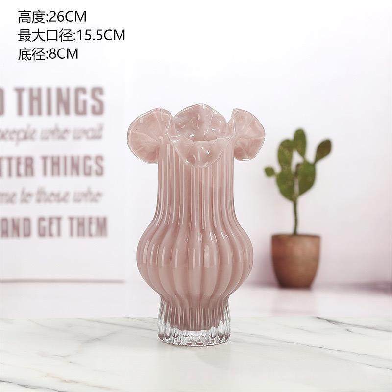 中古玻璃花瓶客厅插花水培高级感饰品法式复古摆件餐桌软装百褶裙