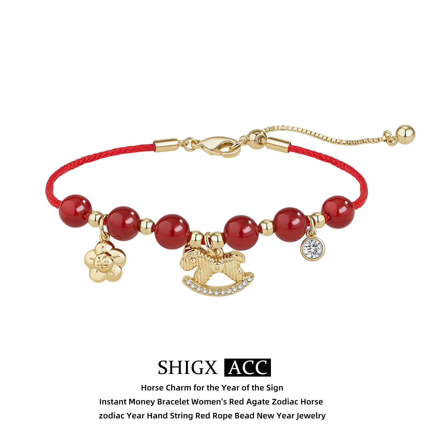 本命年红绳手链女款马上有钱花串珠国风手串生肖马年红绳过年手绳