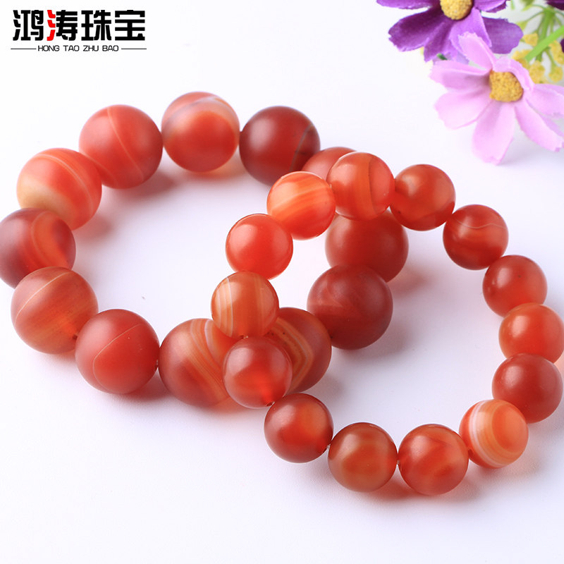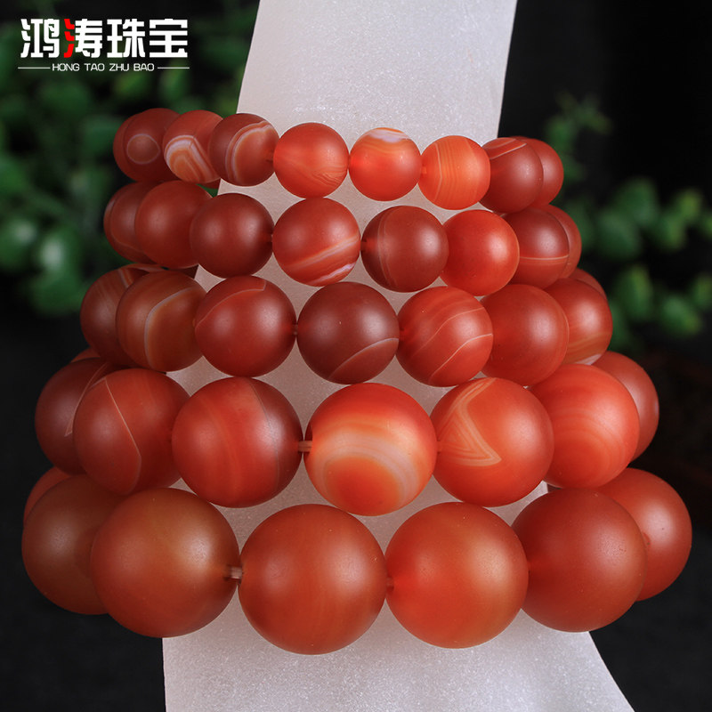 鸿涛天然红色玛瑙手串单圈玉髓手链男士缠丝玉石串珠链磨砂散珠子
