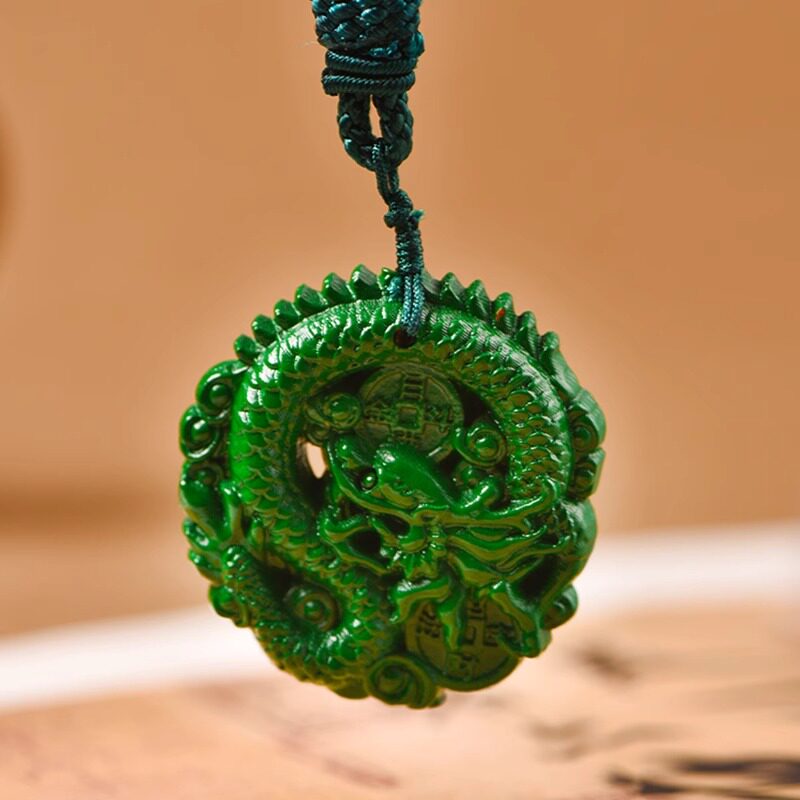 绿色桃木实木飞龙吊坠挂件木头十二生肖木质龙吉祥物装饰工艺品品