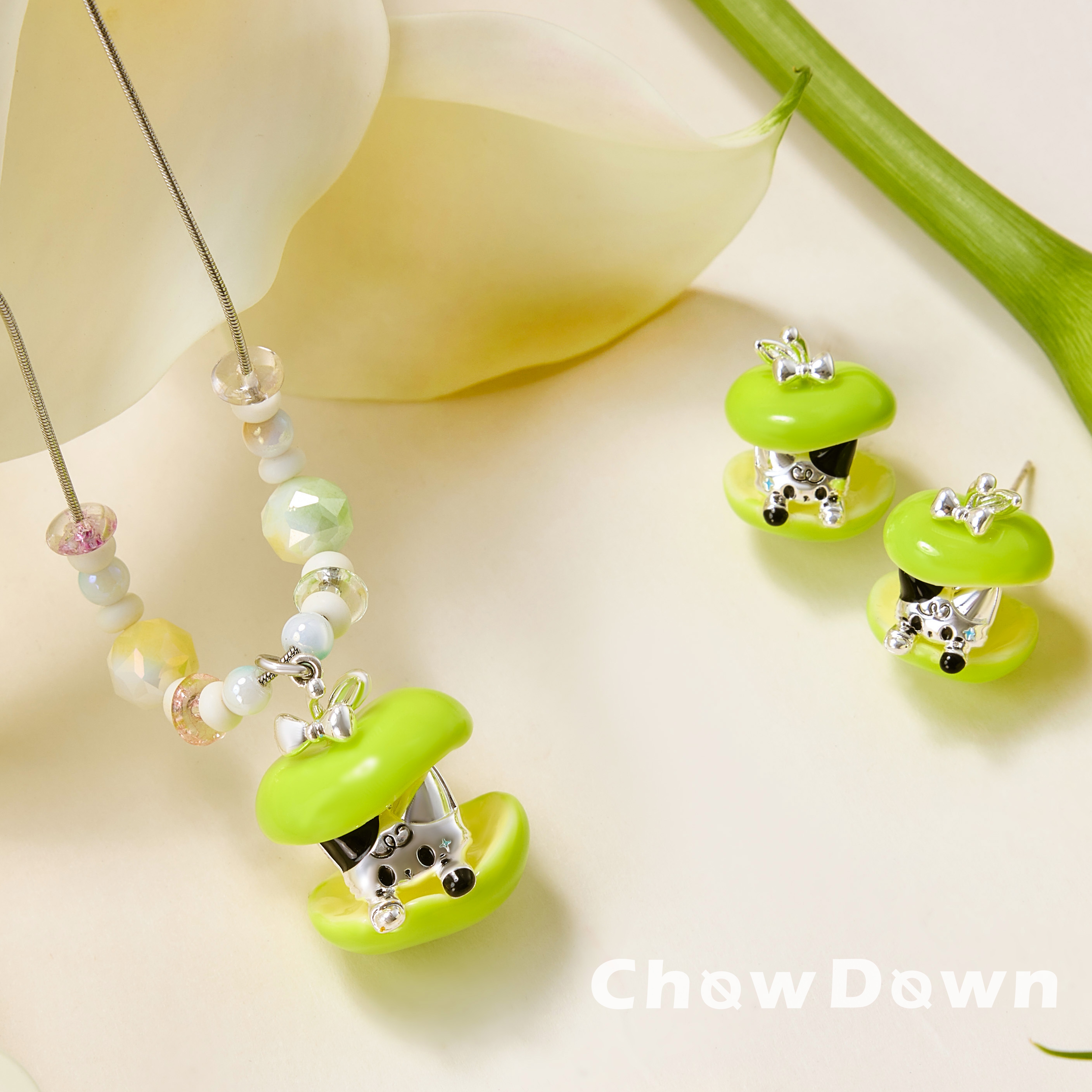 CHOWDOWN原创3D打印青苹果猫咪锁骨链串珠款极简百搭项链甜酷小众